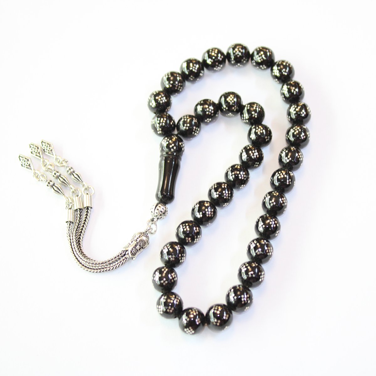Dörtlü Baklava İşleme Oltu Taşı Tespih 9 (mm)