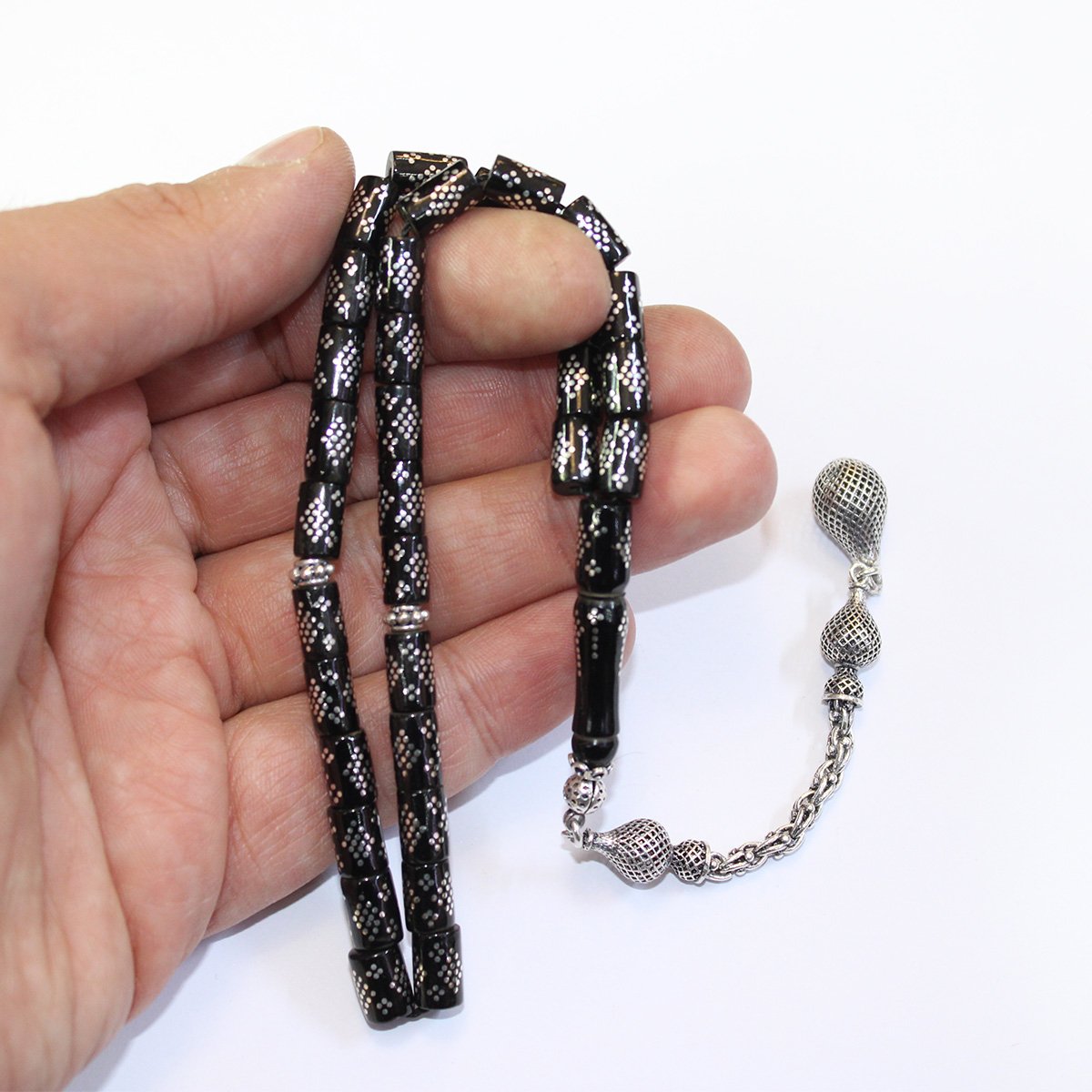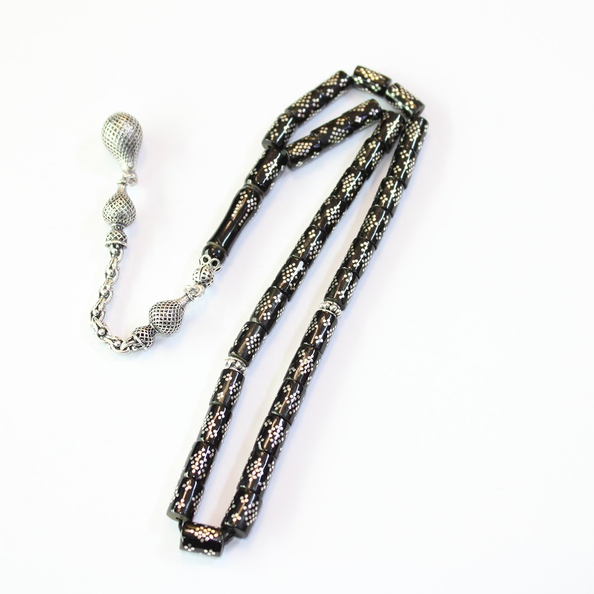 Dörtlü Baklava İşlemeli Kesme Oltu Taşı Tespih 5,5*8,5 (mm)