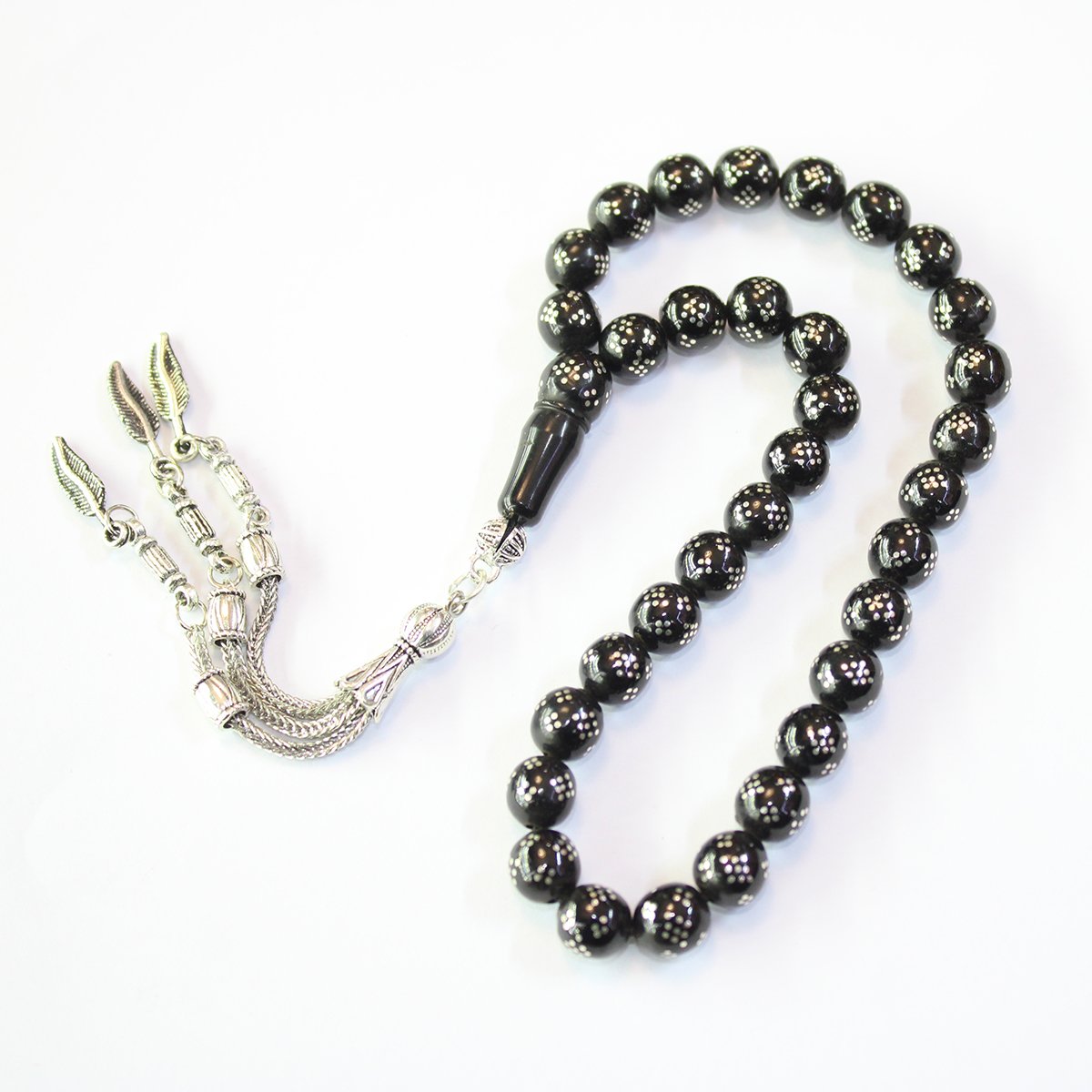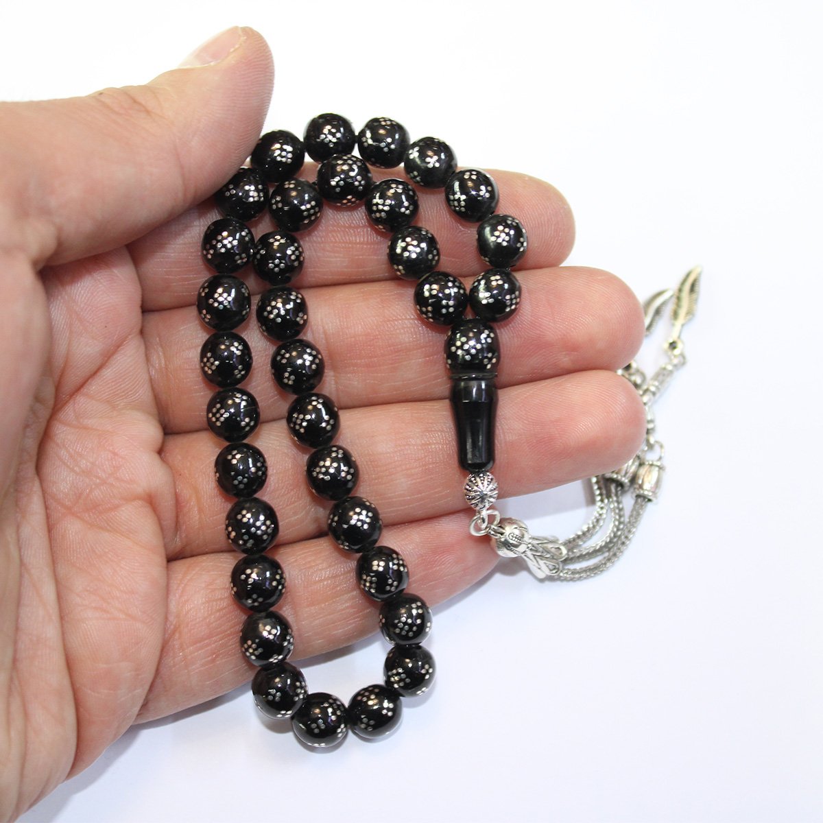 Dörtlü & Baklava İşlemeli Oltu Taşı Tespih 8 (mm)