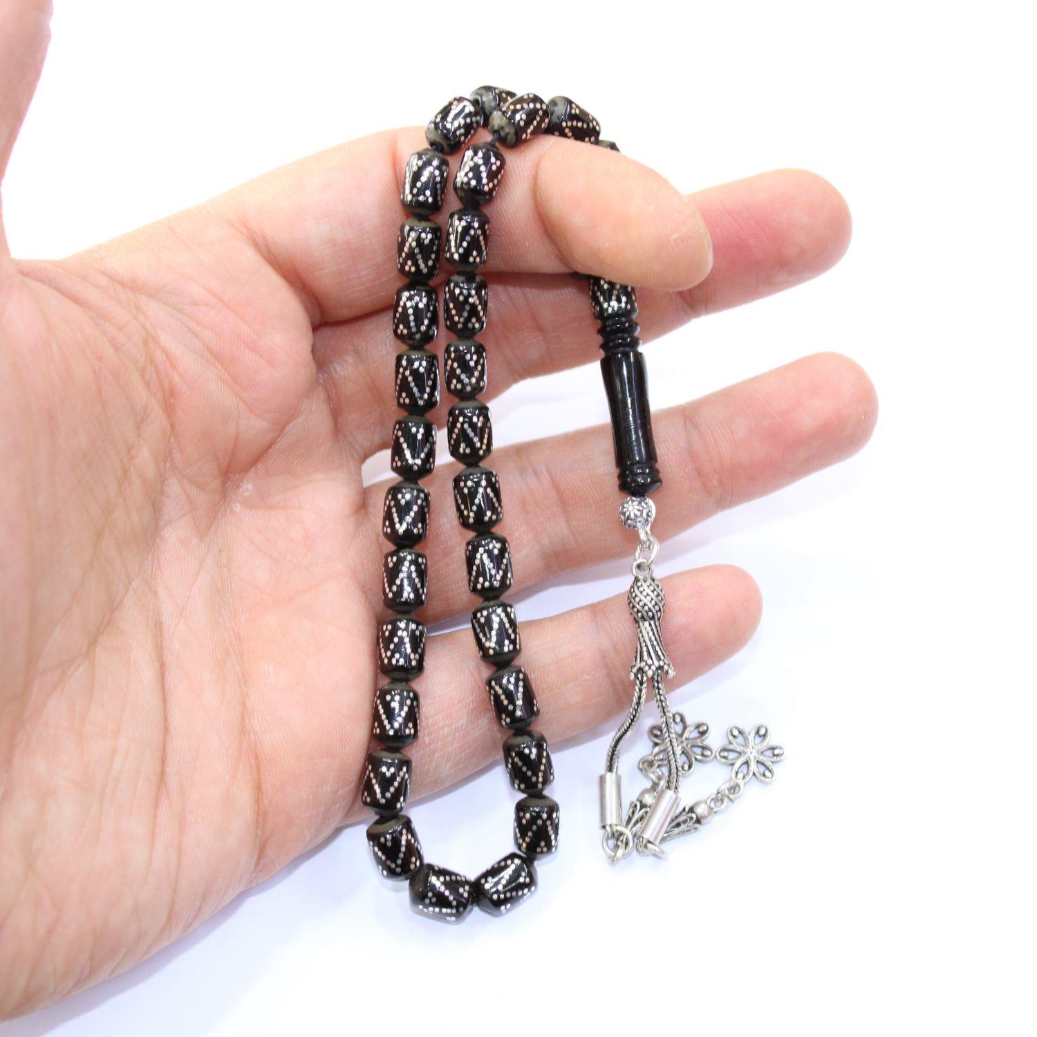 Dörtlü V İşleme Oltu Taşı Tespih 6*9 (mm)