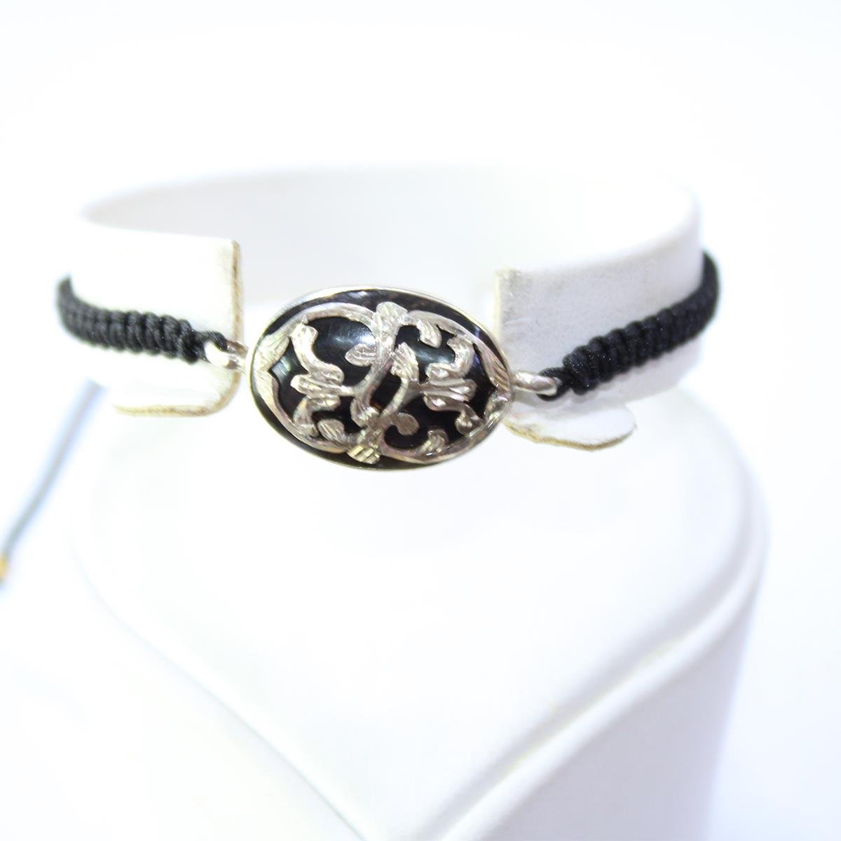 El Yapımı Gümüş Motifli Oltu Taşı Oval Asansörlü Bileklik-2