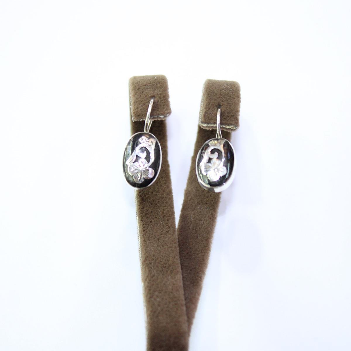 El Yapımı Gümüş Oltu Taşı Gerli Güllü Küpe Oval Model -1