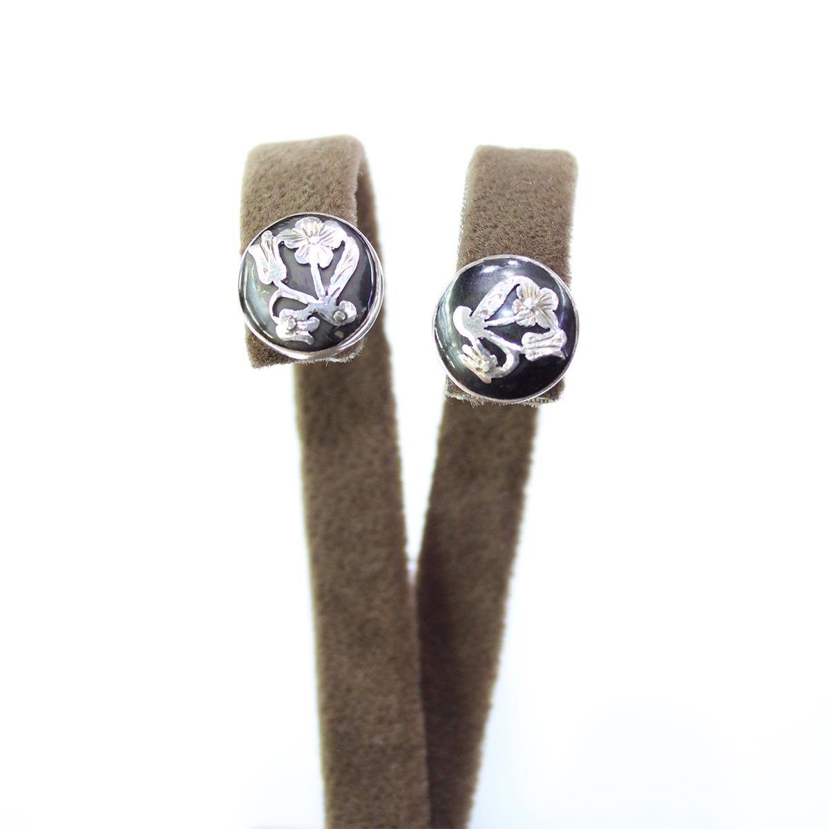 El Yapımı Gümüş Oltu Taşı Güllü Küpe Yuvarlak