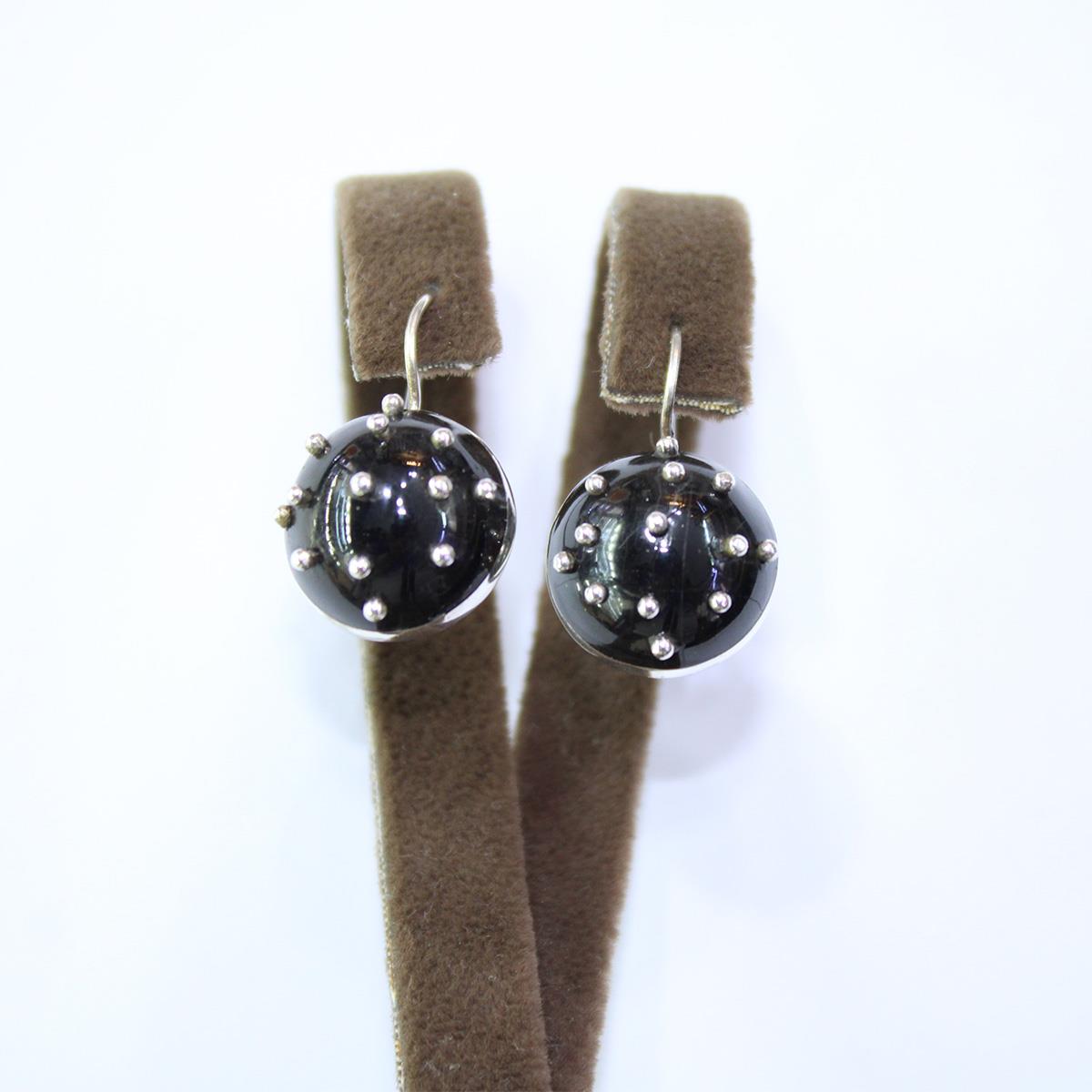 El Yapımı Gümüş Oltu Taşı Güverseli Gerli Küpe Yuvarlak Model -2