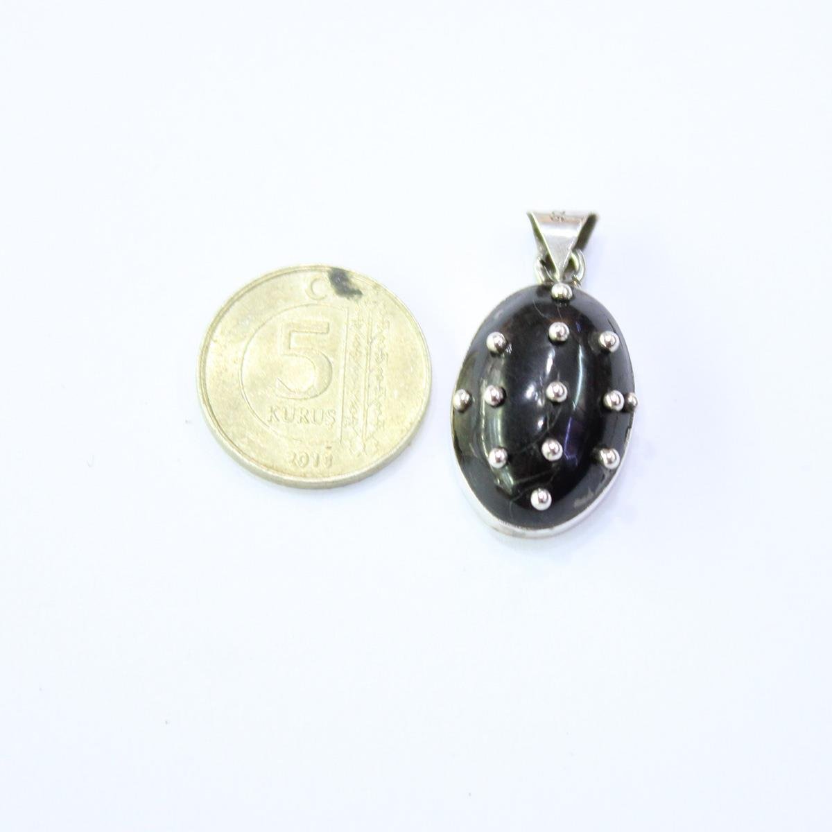 El Yapımı Gümüş Oltu Taşı Güverseli Kolye Oval Model No-1
