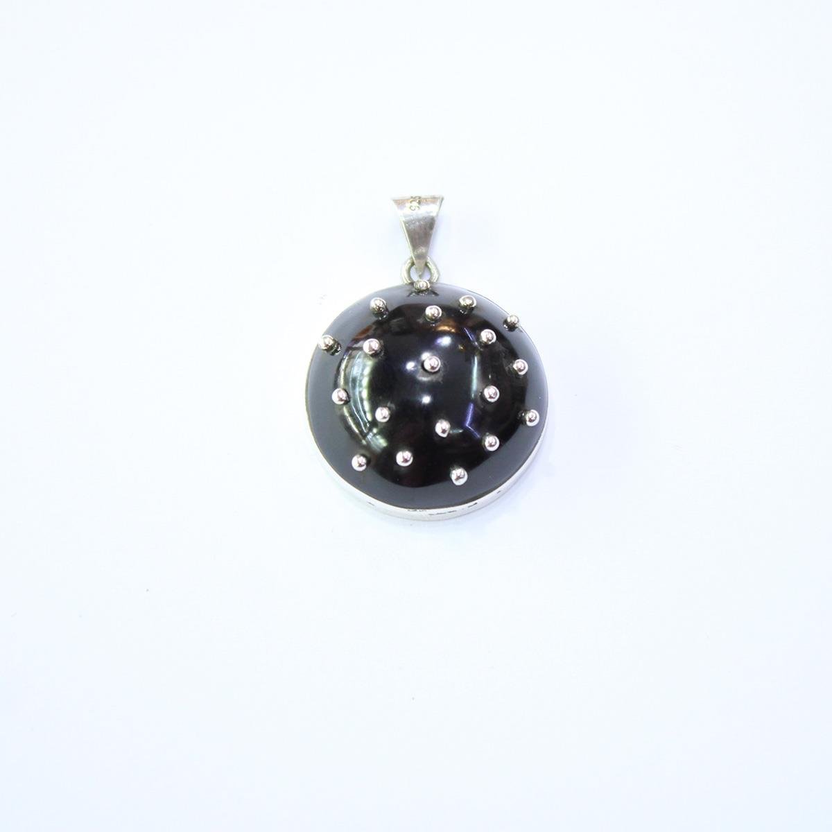 El Yapımı Gümüş Oltu Taşı Güverseli Kolye Yuvarlak Model No-3