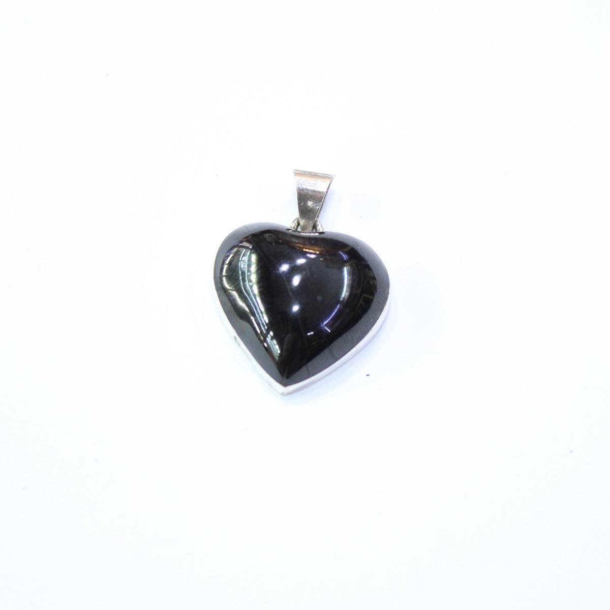 El Yapımı Gümüş Oltu Taşı Kolye Kalp Model
