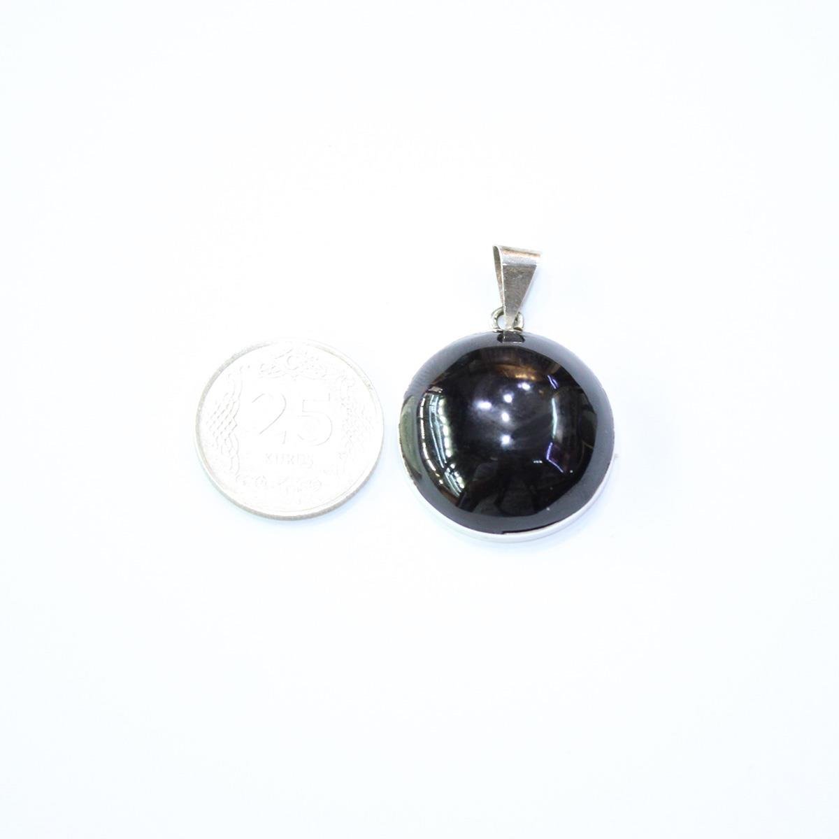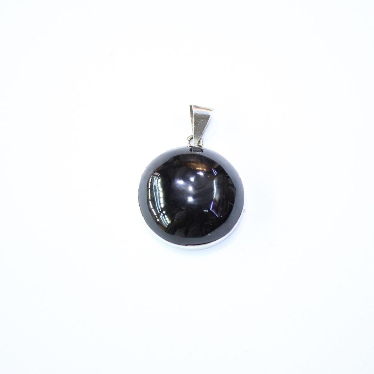 El Yapımı Gümüş Oltu Taşı Kolye Yuvarlak Model No-4