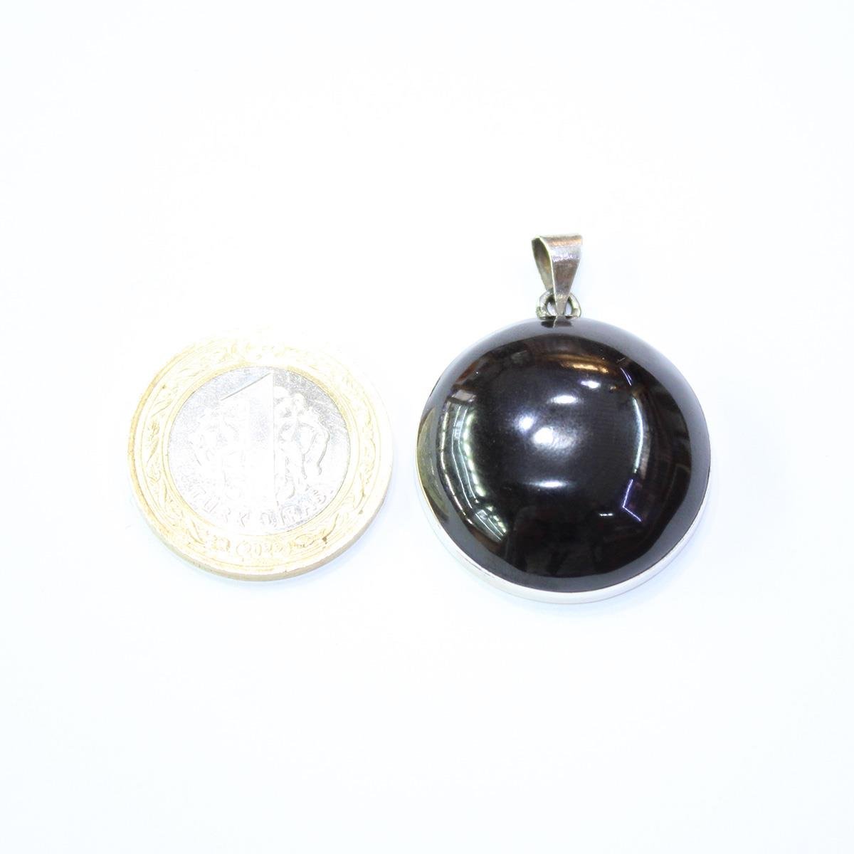 El Yapımı Gümüş Oltu Taşı Kolye Yuvarlak Model No-6