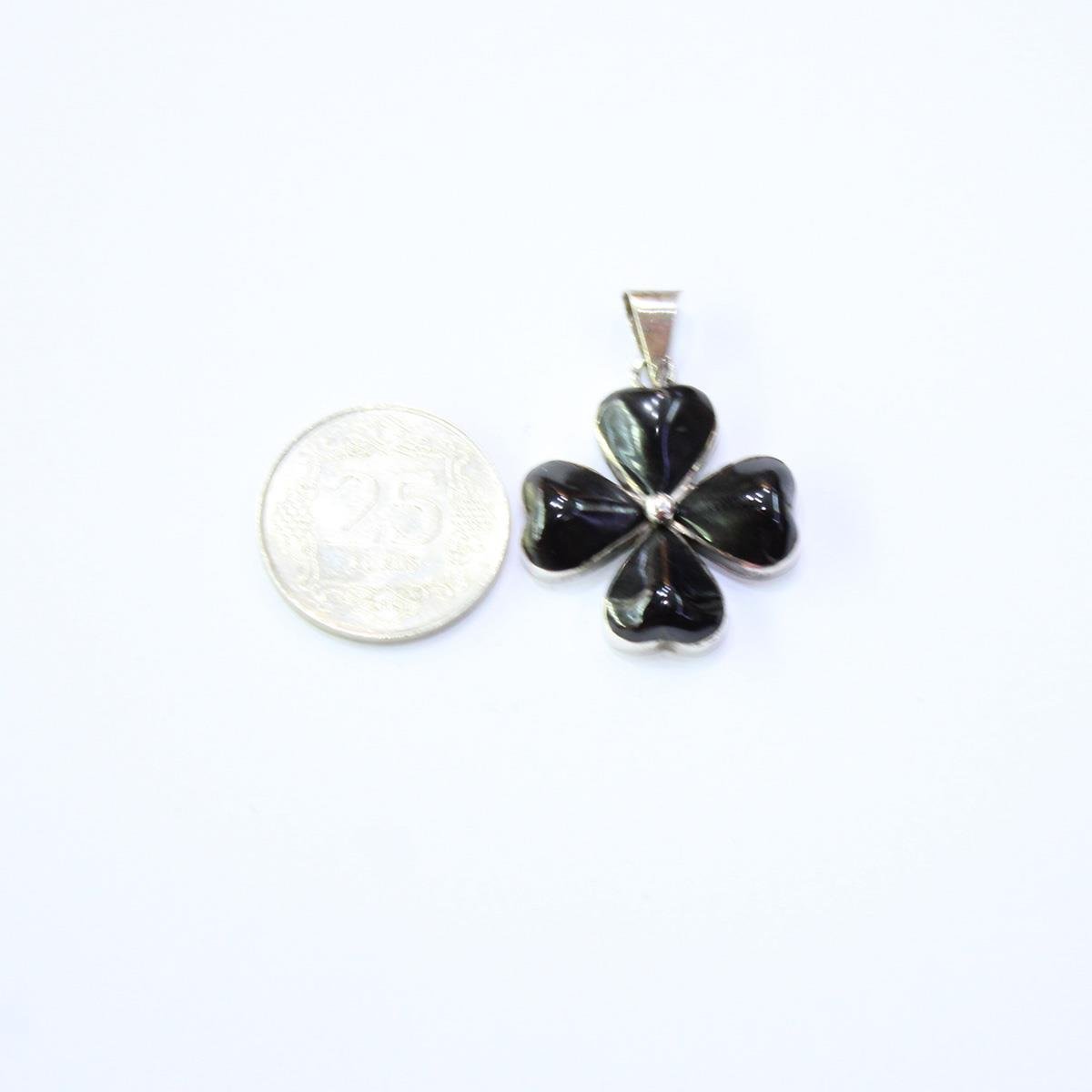 El Yapımı Gümüş Oltu Taşı Yonca Kolye No-1