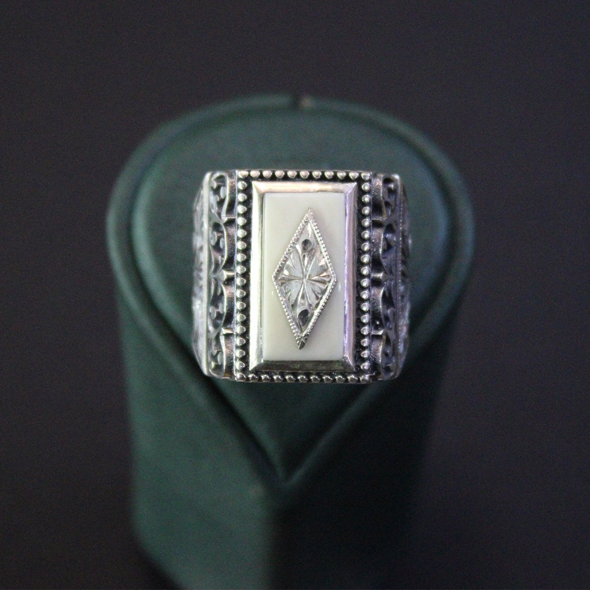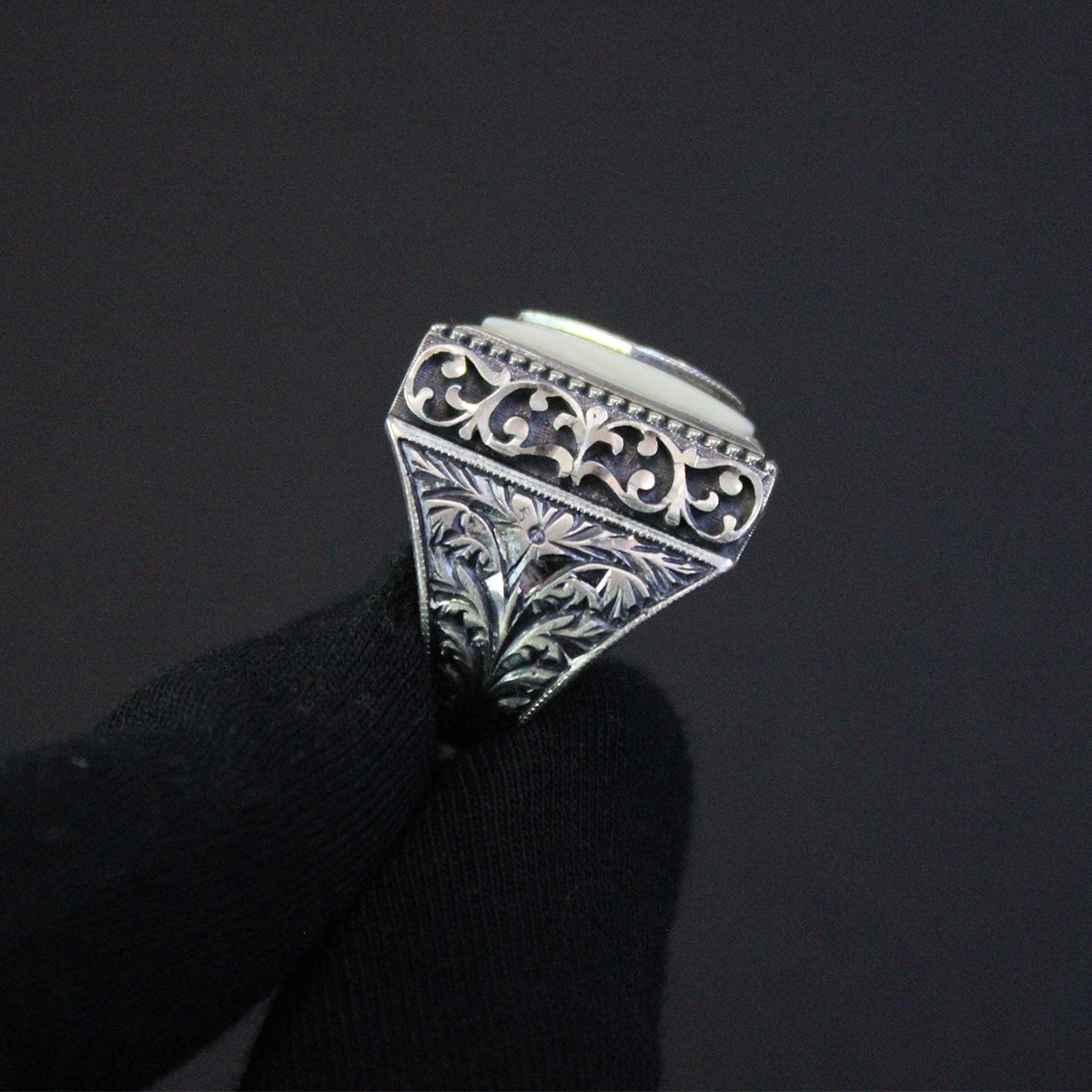 Fil Dişi Kalem İşçiliği Gümüş Erkek Yüzük