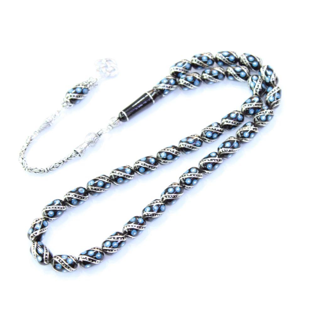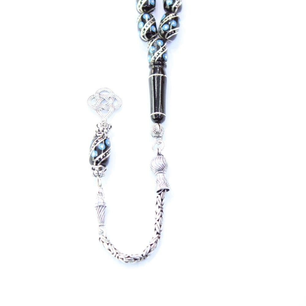 Firuze İşlemeli Oltu Taşı Tespih 8*12 (mm)