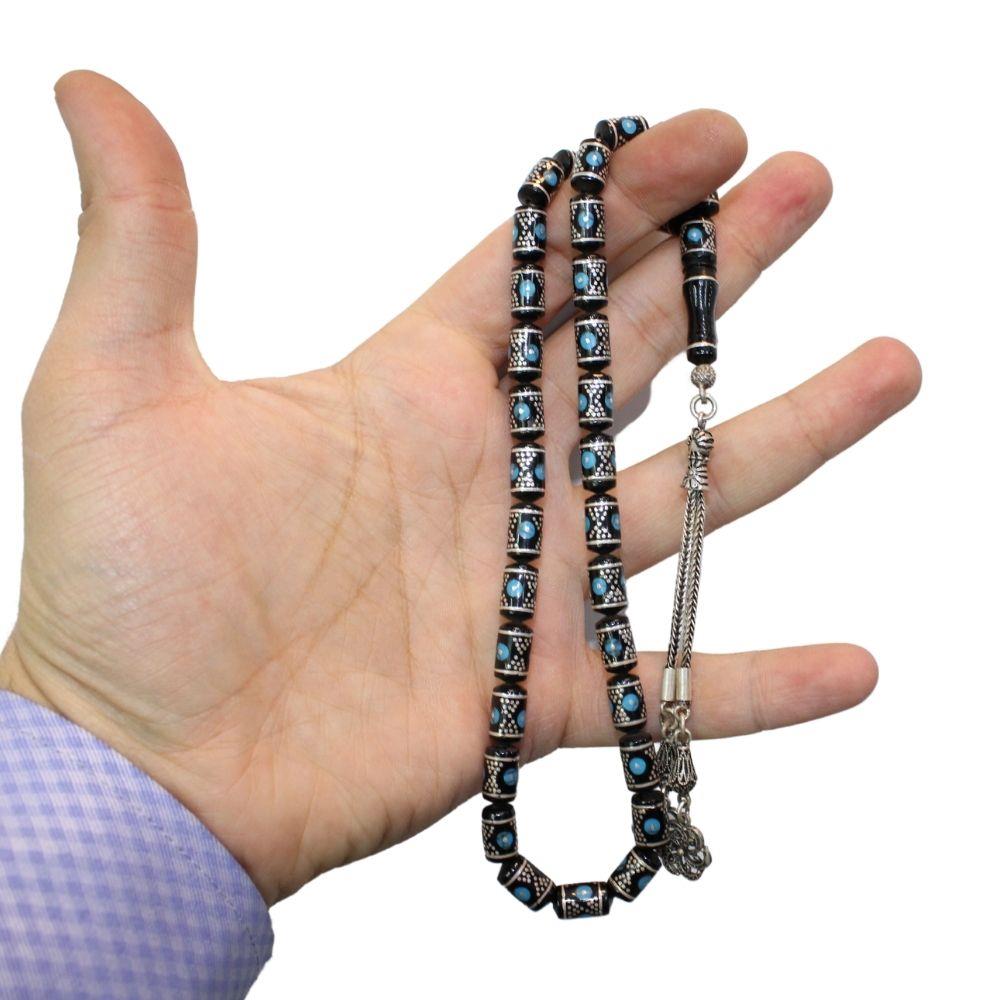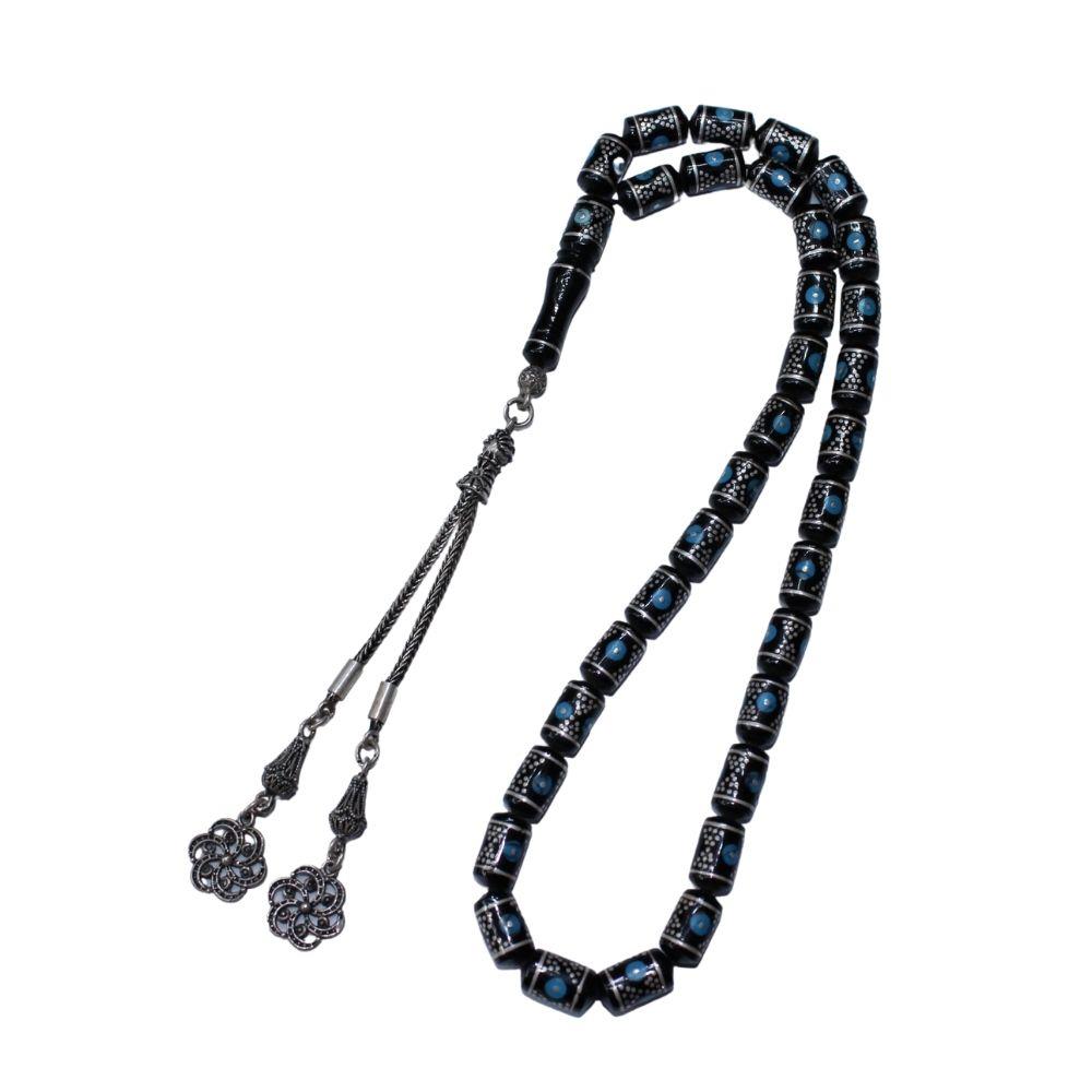 Firuze İşlemeli Oltu Taşı Tespih Kapsül 7*11 (mm)