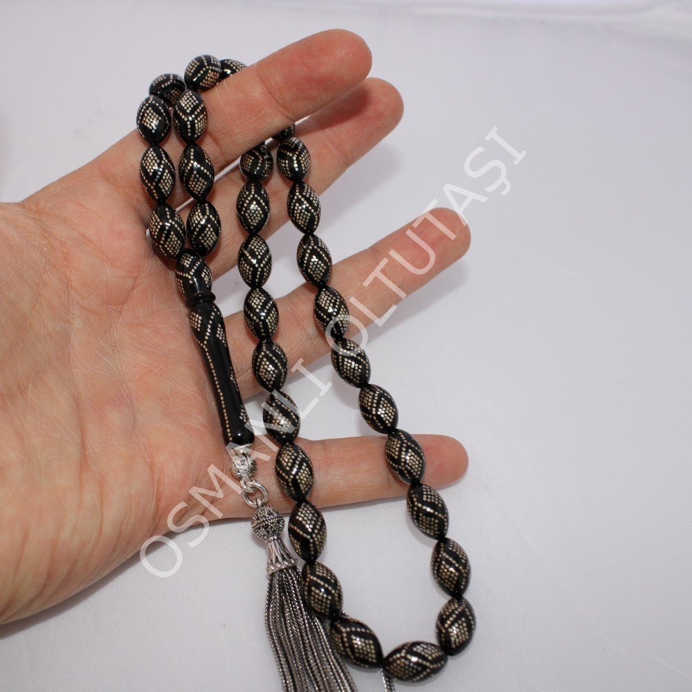 Oltu taşı,Erzurum'un Oltu ilçesinin kuzeydoğu kesiminden çıkarılmakta olan yarı değerli bir taştır. Kolay işlenebilme özelliğinden dolayı takı ve ziynet eşyası yapımında kullanılır. Oltu taşı genellikle siyah renktedir. Bir karbon bileşenidir. Çoğunlukla siyah renkli olanı tercih edilir. Genelde bayan takıları ve tespih üretiminde önemli bir yere sahiptir. Gümüş, firuze ve mercan gibi değerli taşlar kullanılarak Oltu taşı üzerine işlemeler de yapılmaktadır. Bu üründe tedarikçi yoktur, Kendi atölyelerimizdeki ustalar tarafından yapılmaktadır.