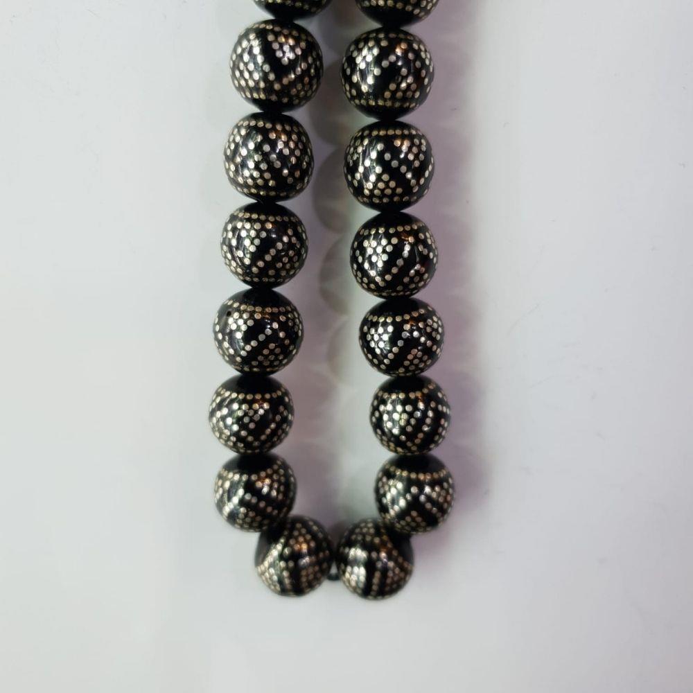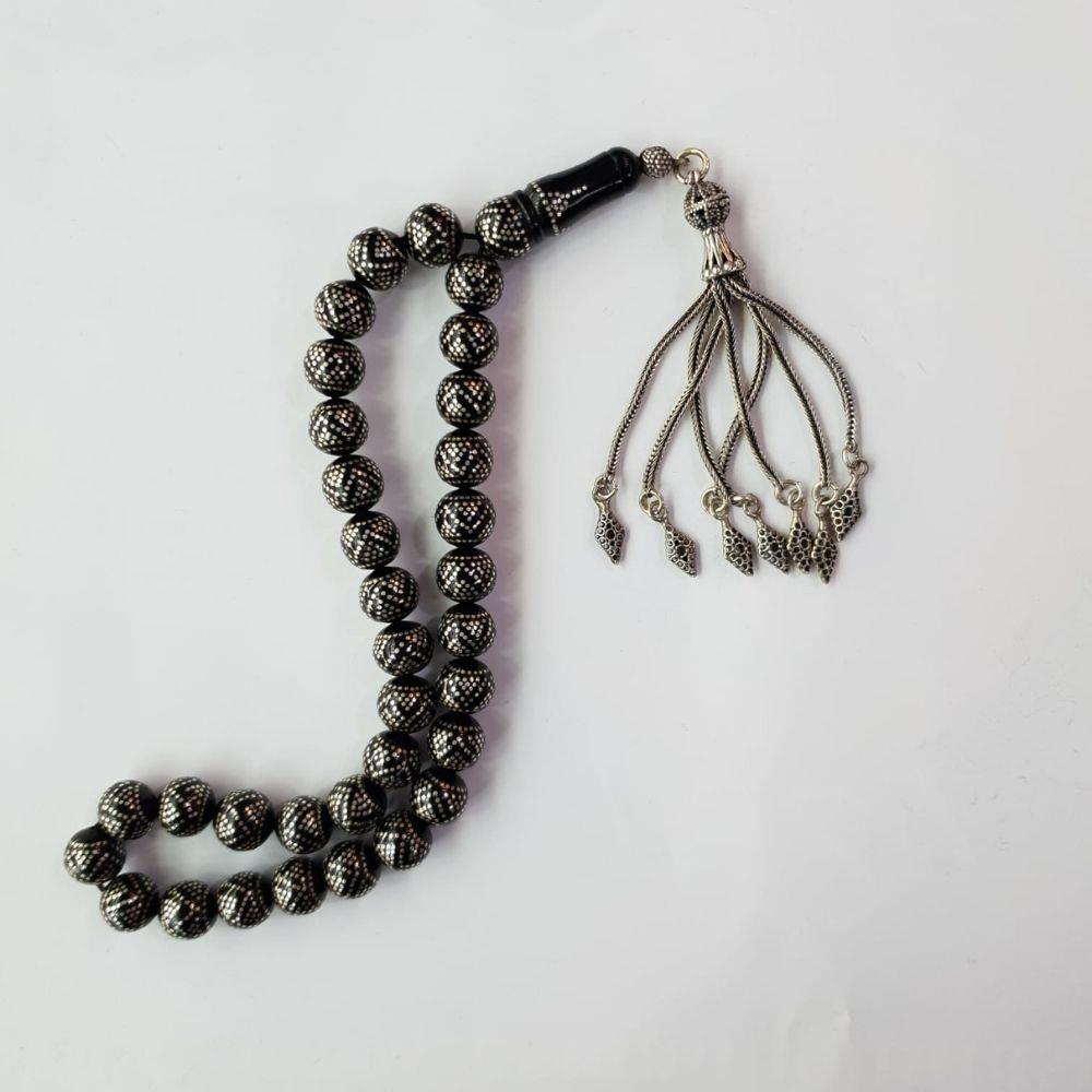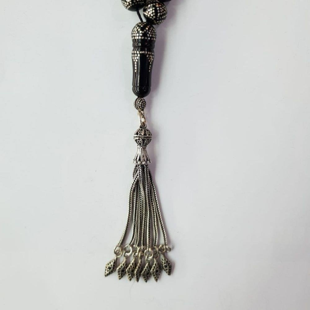 Gümüş Piramit İşlemeli Oltu Taşı Tespih Küre Kesim 9,5 (mm)