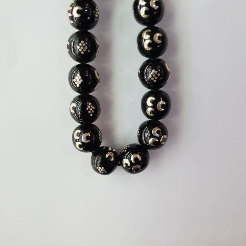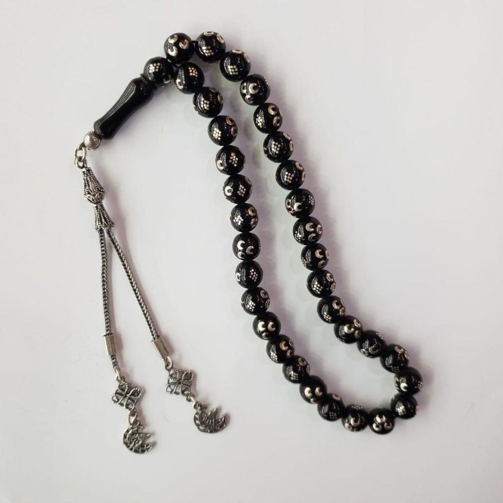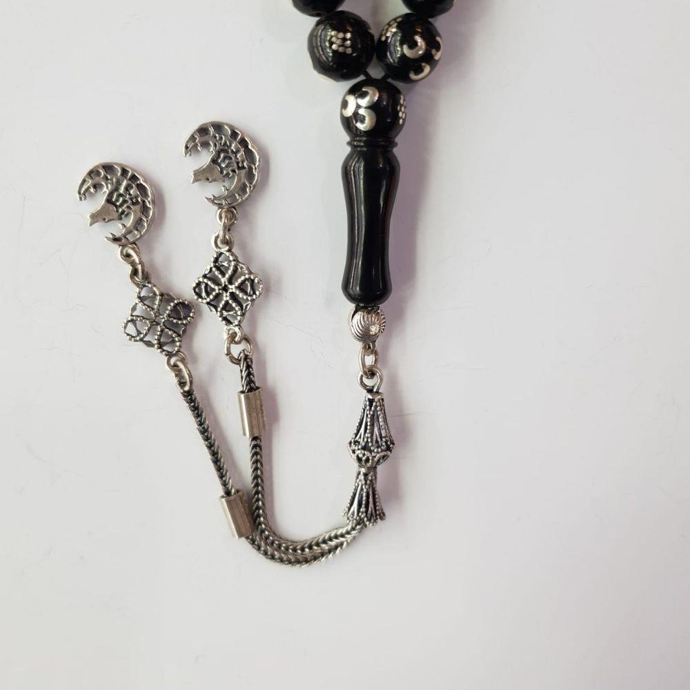 Üç Hilal İşlemeli Oltu Taşı Tespih 9,5 (mm)