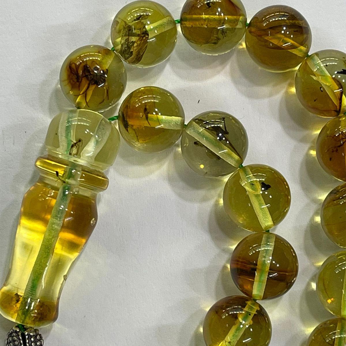 Kehribar taşı sanılanın aksine bir mücevher değil 40 milyon yıl önce ölen birçam türü olan Pinus succinifera ağaçlarının fosilleşmiş reçinesidir. Öyle ki kehribarlar, tarih öncesi böcekleri bile içinde saklamıştır. İnsanların binlerce yıldır, deniz kıyılarından, akarsulardan, alüvyon ve hatta bataklıklar arasından topladıkları bu değerli taş yeryüzünden silinen onlarca farklı ağaç türünün insanlığa armağanı olmuştur. 33 tanesi de çeşitli büyüklüklerde, bir kaç milyon yaşında haşere ihtiva eden kaliningrad damla kehribar tespih.