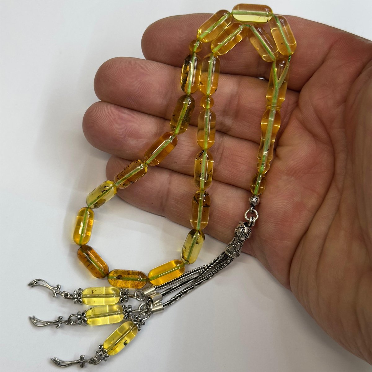 Haşere Fosilli Kaliningrad Damla Kehribar Tespih 6*13,5 (mm)