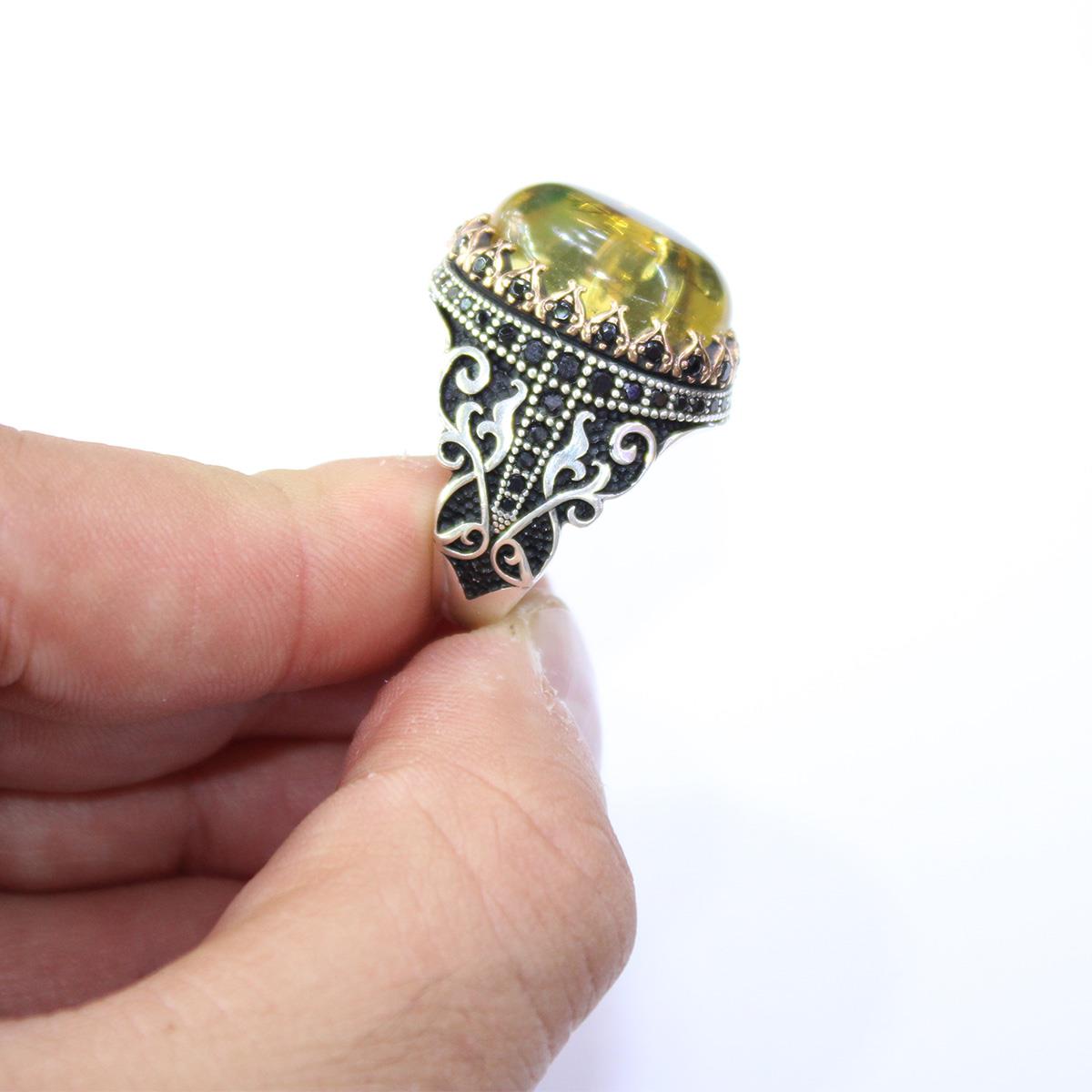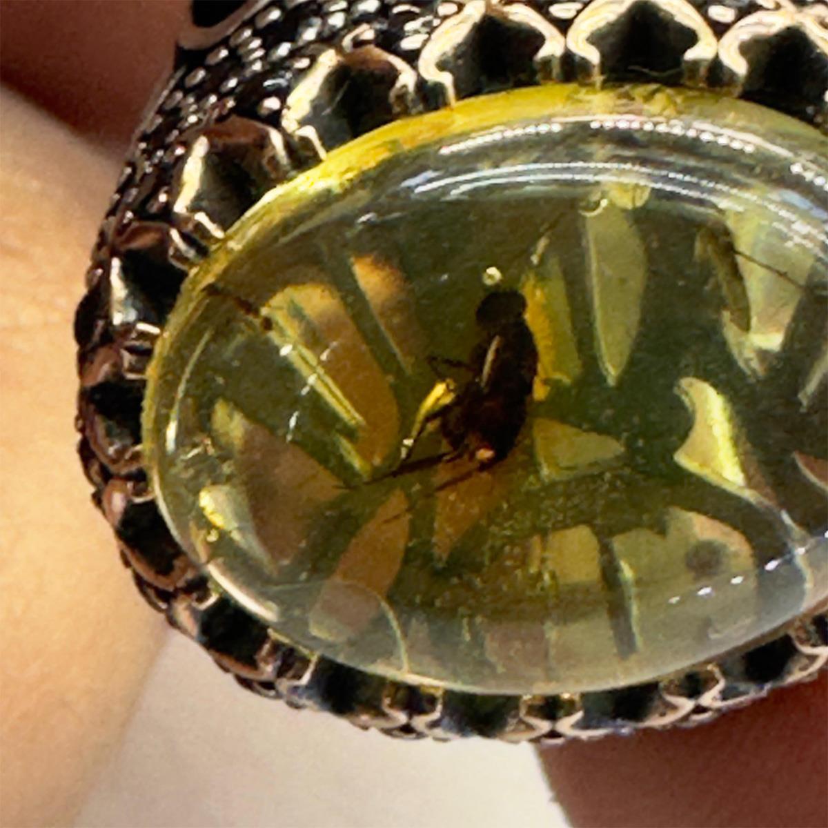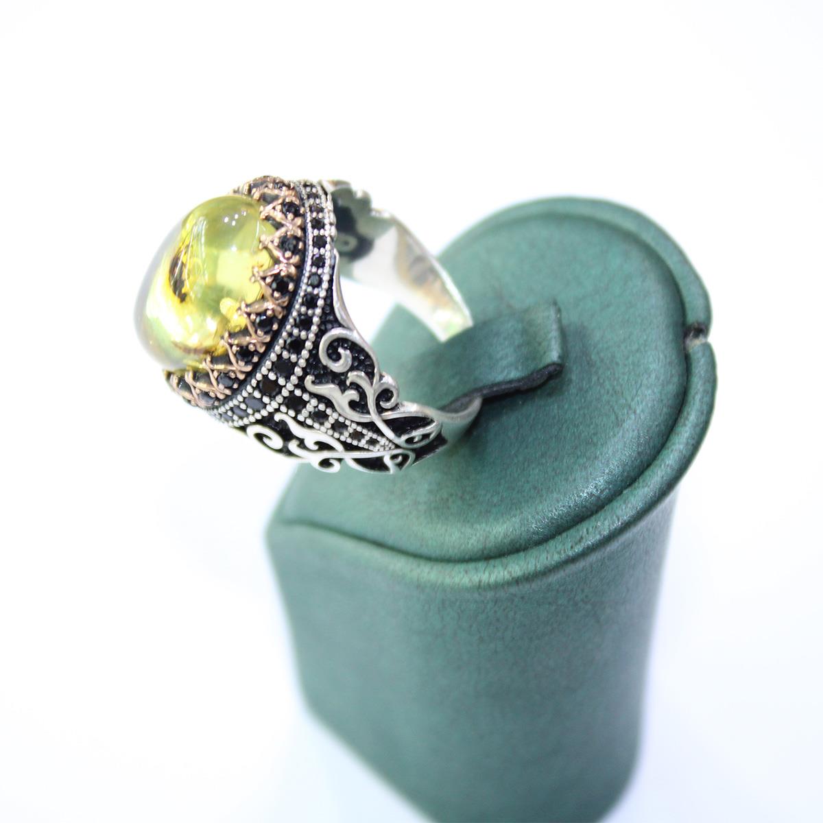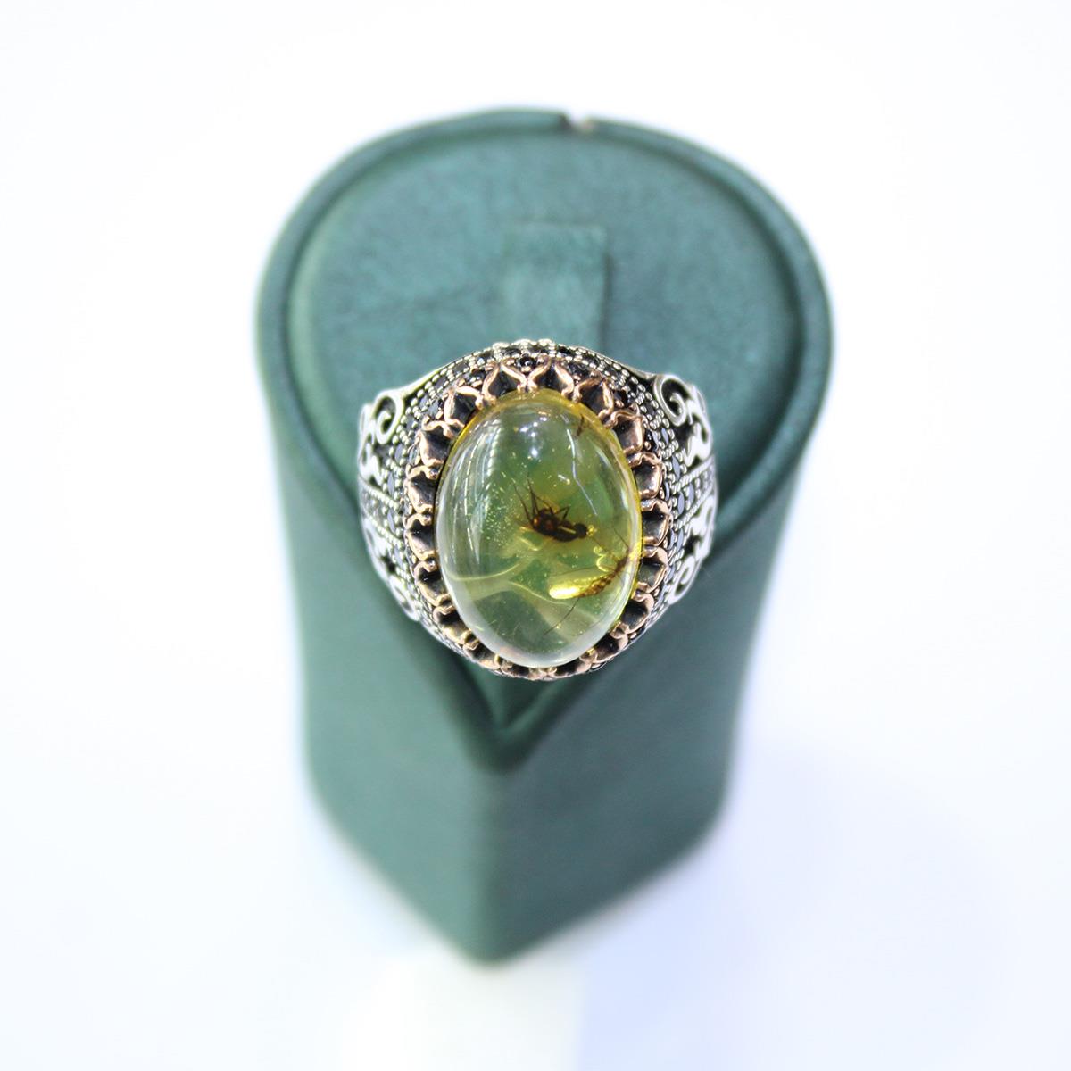 Haşere Fosilli Kaliningrad Damla Kehribar Yüzük Model - 4