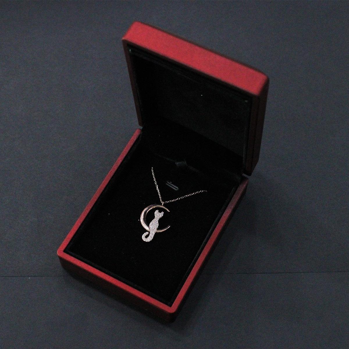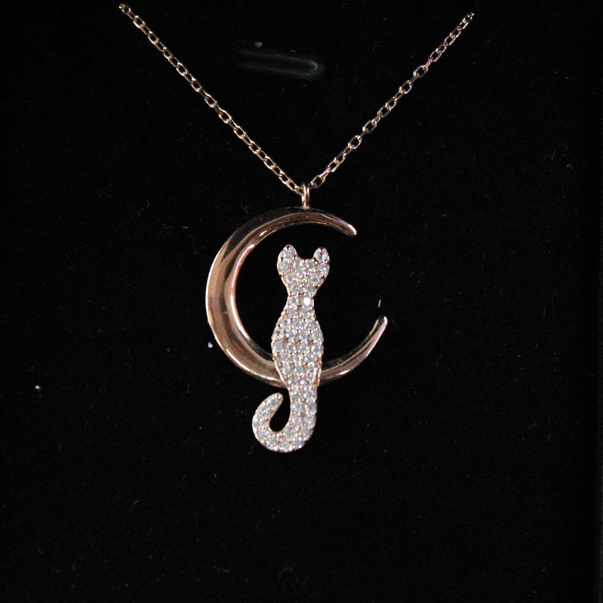 Hilal & Kedi Motifli Rose Hayalet Kolye