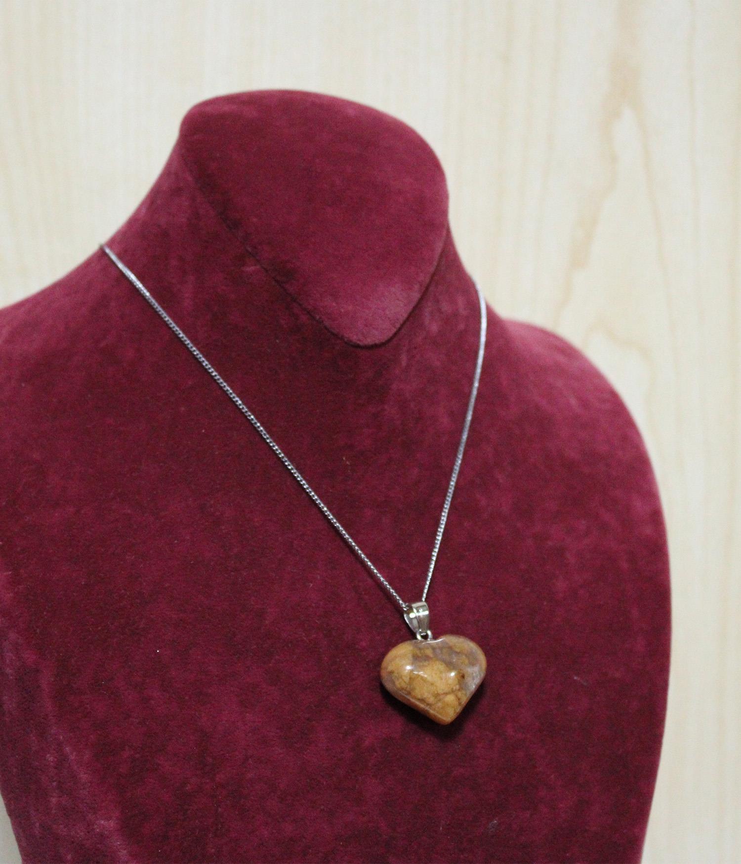 Kahverengi Jasper Doğal Taş Kalp Kolye