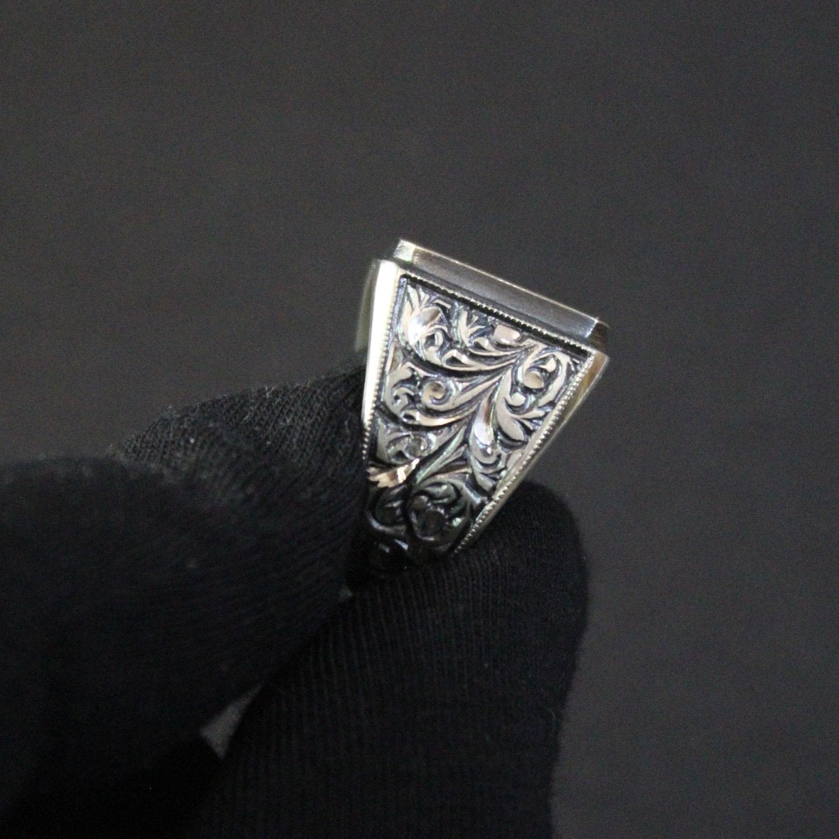 Kalem İşçiliği Gümüş Erkek Yüzük-4