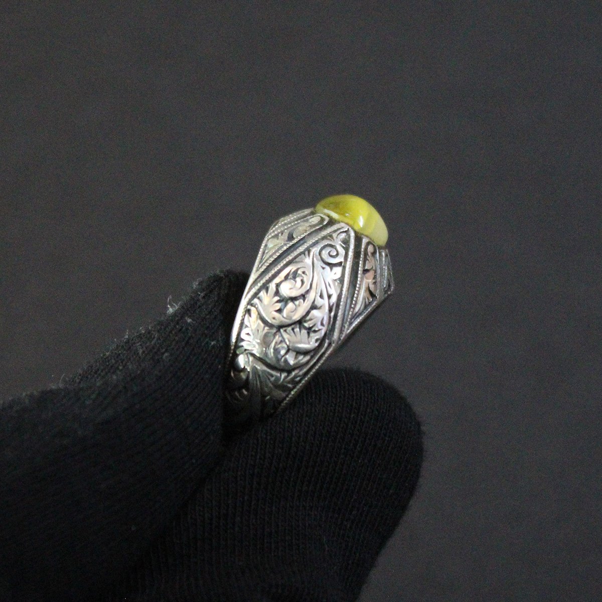 Kalem İşçiliği Gümüş Kaliningrad Damla Kehribar Erkek Yüzük