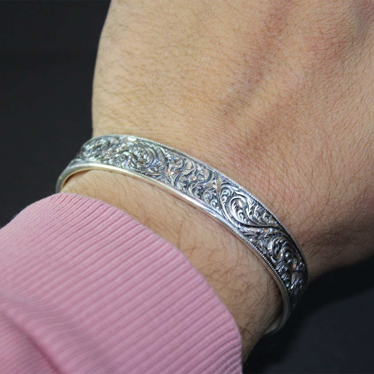 Kalem İşçiliği Gümüş Unisex Bileklik-1