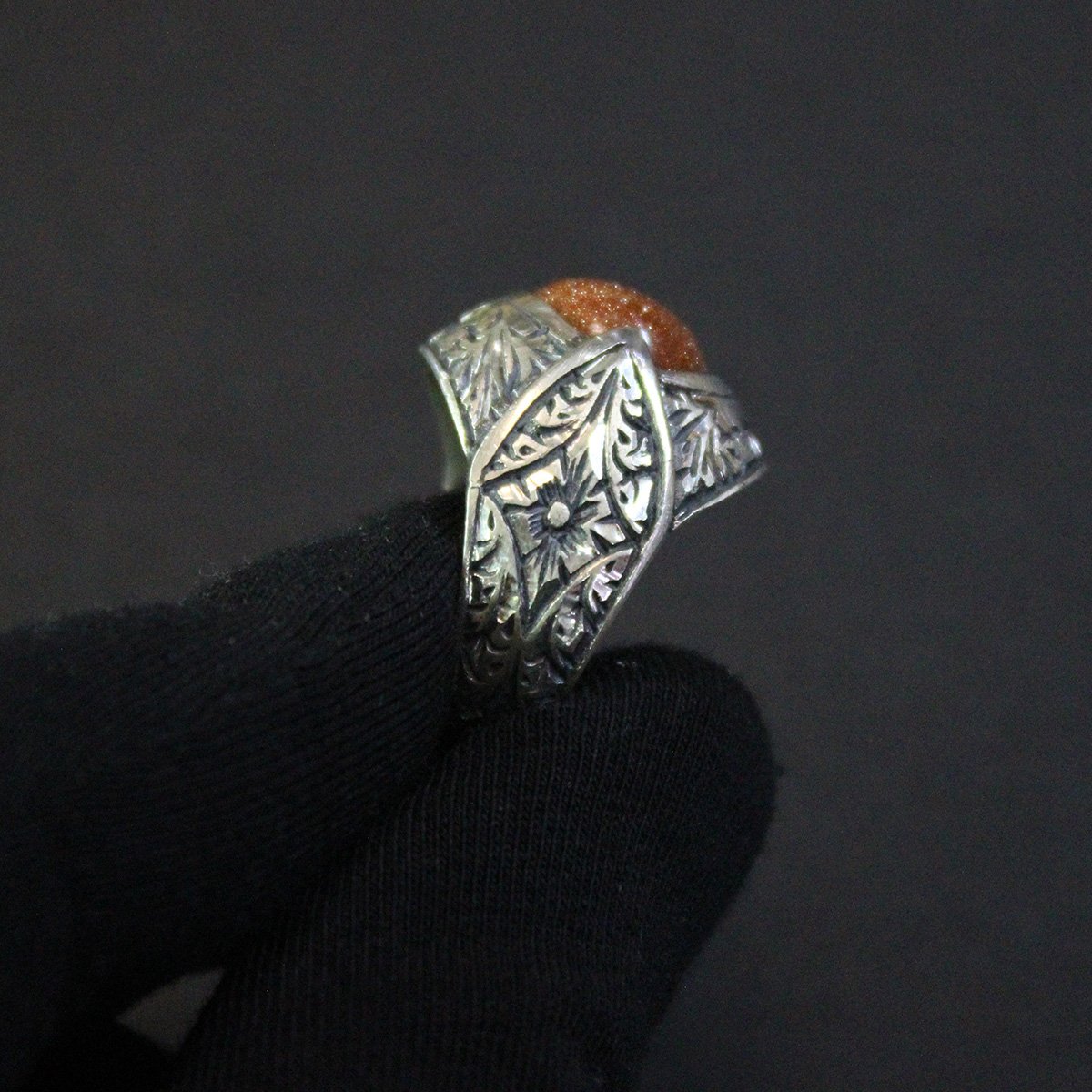 Kalem İşçiliği Yıldız Taşlı Gümüş Erkek Yüzük