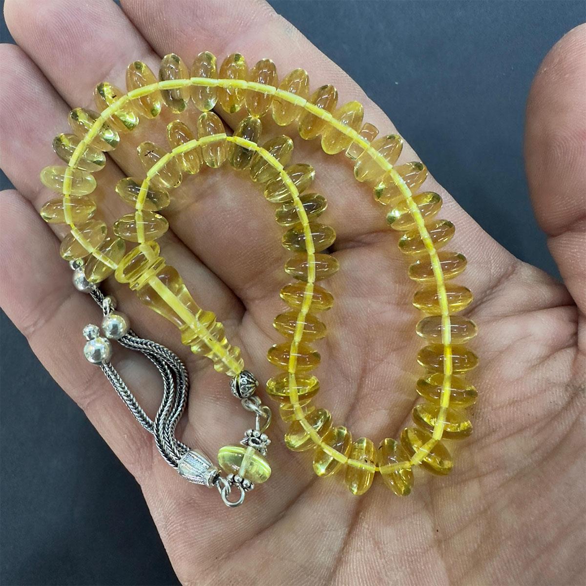 Kehribar taşı sanılanın aksine bir mücevher değil 40 milyon yıl önce ölen birçam türü olan Pinus succinifera ağaçlarının fosilleşmiş reçinesidir. Öyle ki kehribarlar, tarih öncesi böcekleri bile içinde saklamıştır. İnsanların binlerce yıldır, deniz kıyılarından, akarsulardan, alüvyon ve hatta bataklıklar arasından topladıkları bu değerli taş yeryüzünden silinen onlarca farklı ağaç türünün insanlığa armağanı olmuştur. 33 tanesi de çeşitli büyüklüklerde, bir kaç milyon yaşında haşere ihtiva eden kaliningrad damla kehribar tespih.