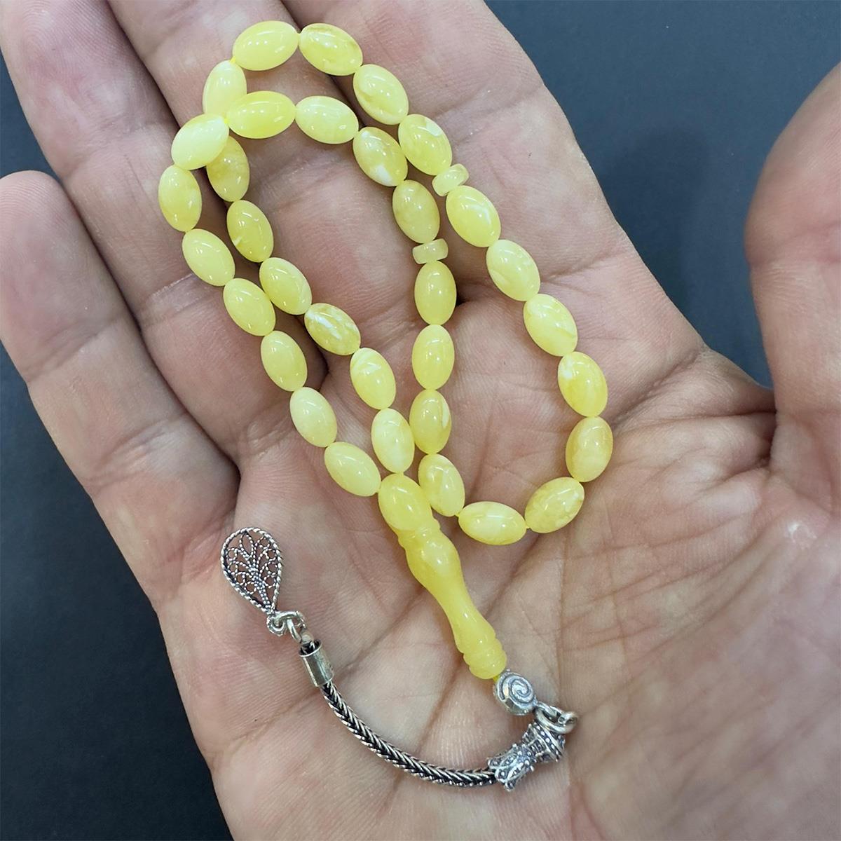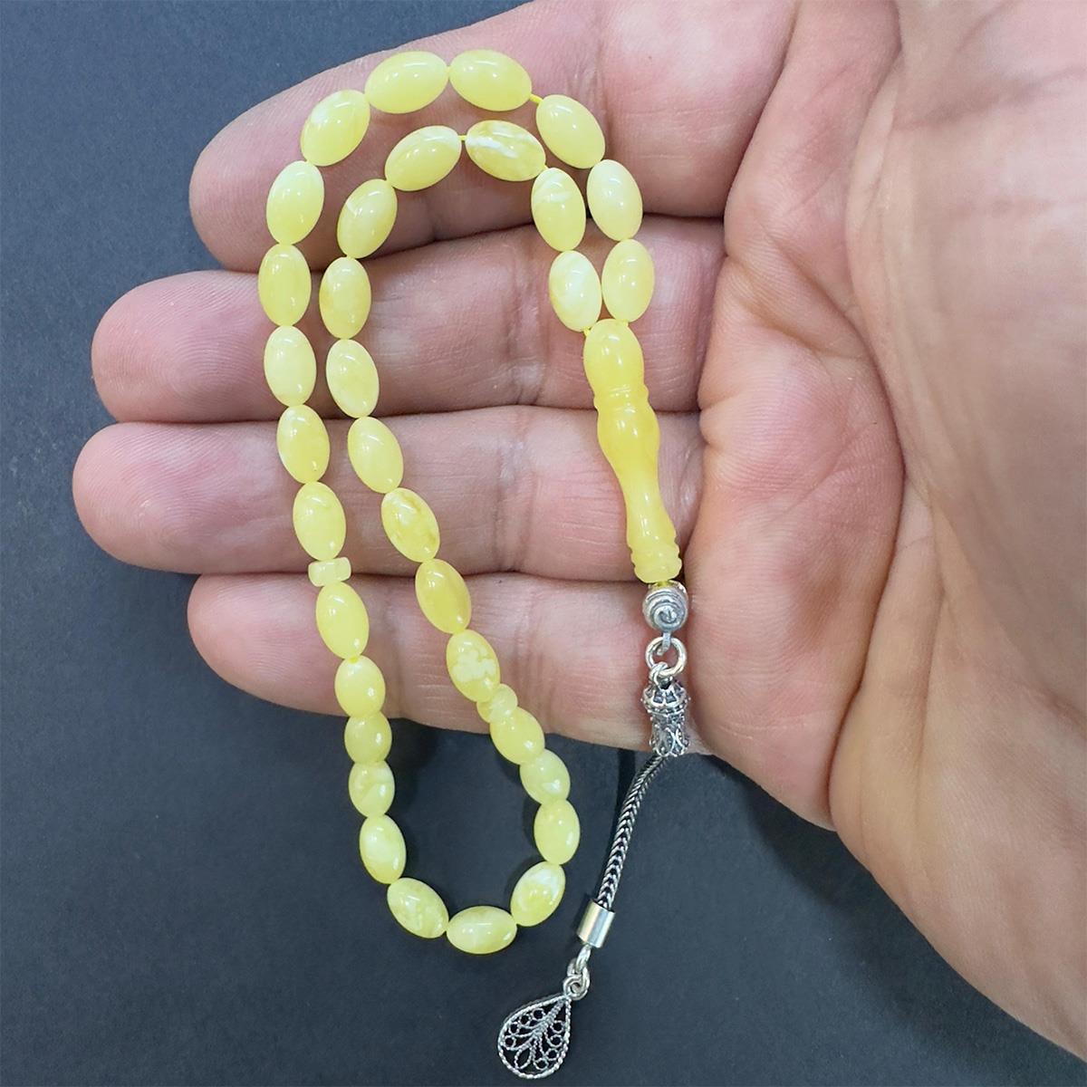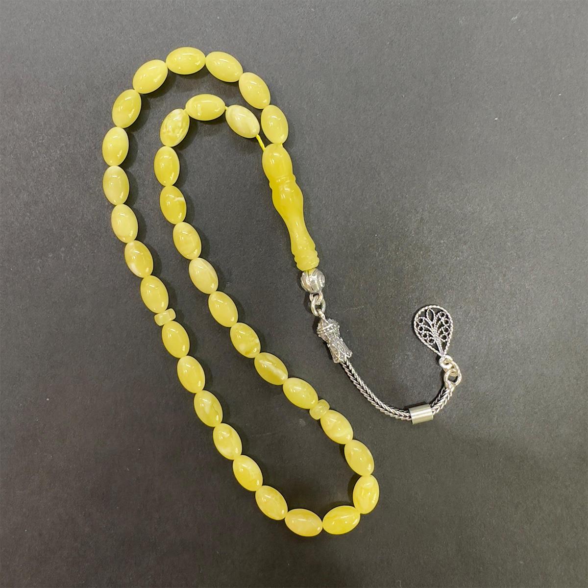 Kehribar taşı sanılanın aksine bir mücevher değil 40 milyon yıl önce ölen birçam türü olan Pinus succinifera ağaçlarının fosilleşmiş reçinesidir. Öyle ki kehribarlar, tarih öncesi böcekleri bile içinde saklamıştır. İnsanların binlerce yıldır, deniz kıyılarından, akarsulardan, alüvyon ve hatta bataklıklar arasından topladıkları bu değerli taş yeryüzünden silinen onlarca farklı ağaç türünün insanlığa armağanı olmuştur. 33 tanesi de çeşitli büyüklüklerde, bir kaç milyon yaşında haşere ihtiva eden kaliningrad damla kehribar tespih.