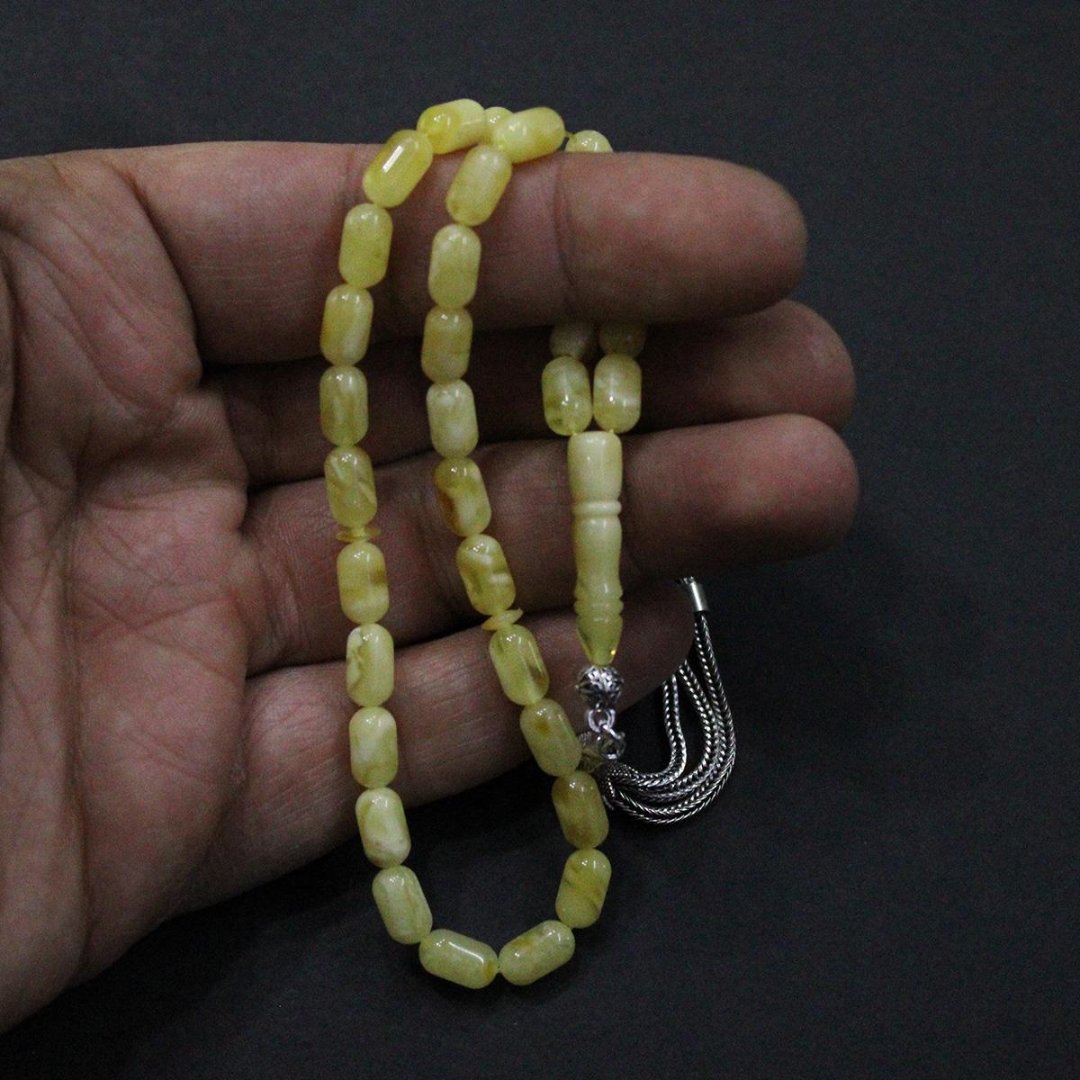 Kehribar taşı sanılanın aksine bir mücevher değil 40 milyon yıl önce ölen birçam türü olan Pinus succinifera ağaçlarının fosilleşmiş reçinesidir. Öyle ki kehribarlar, tarih öncesi böcekleri bile içinde saklamıştır. İnsanların binlerce yıldır, deniz kıyılarından, akarsulardan, alüvyon ve hatta bataklıklar arasından topladıkları bu değerli taş yeryüzünden silinen onlarca farklı ağaç türünün insanlığa armağanı olmuştur. 33 tanesi de çeşitli büyüklüklerde, bir kaç milyon yaşında haşere ihtiva eden kaliningrad damla kehribar tespih.