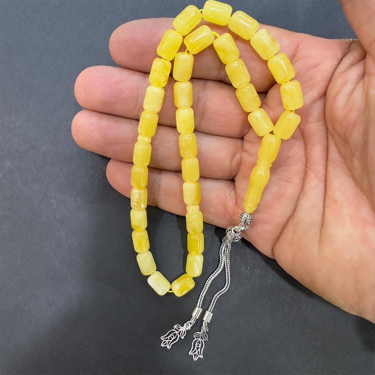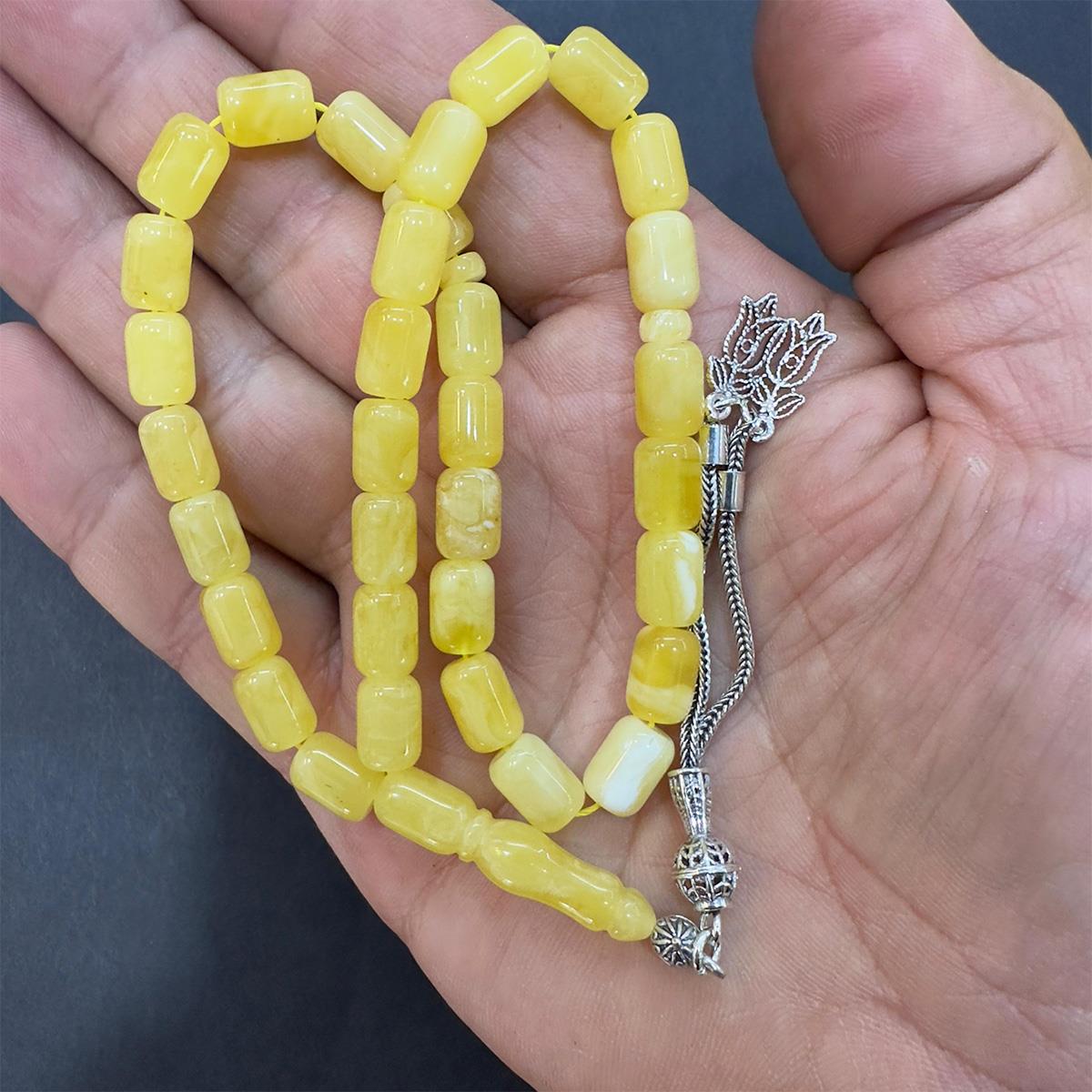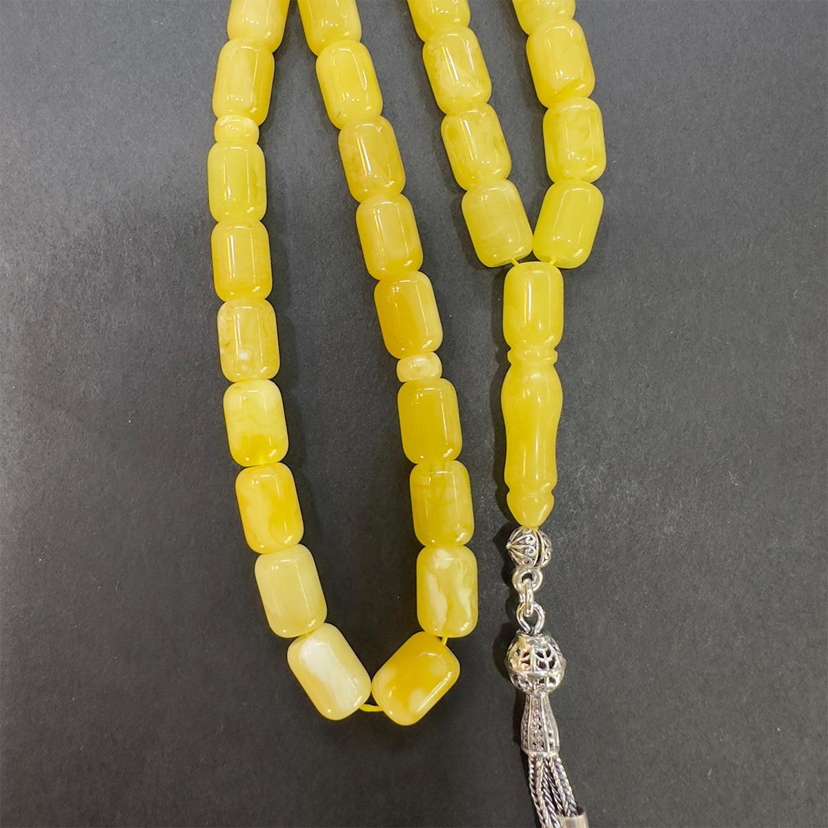 Kehribar taşı sanılanın aksine bir mücevher değil 40 milyon yıl önce ölen birçam türü olan Pinus succinifera ağaçlarının fosilleşmiş reçinesidir. Öyle ki kehribarlar, tarih öncesi böcekleri bile içinde saklamıştır. İnsanların binlerce yıldır, deniz kıyılarından, akarsulardan, alüvyon ve hatta bataklıklar arasından topladıkları bu değerli taş yeryüzünden silinen onlarca farklı ağaç türünün insanlığa armağanı olmuştur. 33 tanesi de çeşitli büyüklüklerde, bir kaç milyon yaşında haşere ihtiva eden kaliningrad damla kehribar tespih.