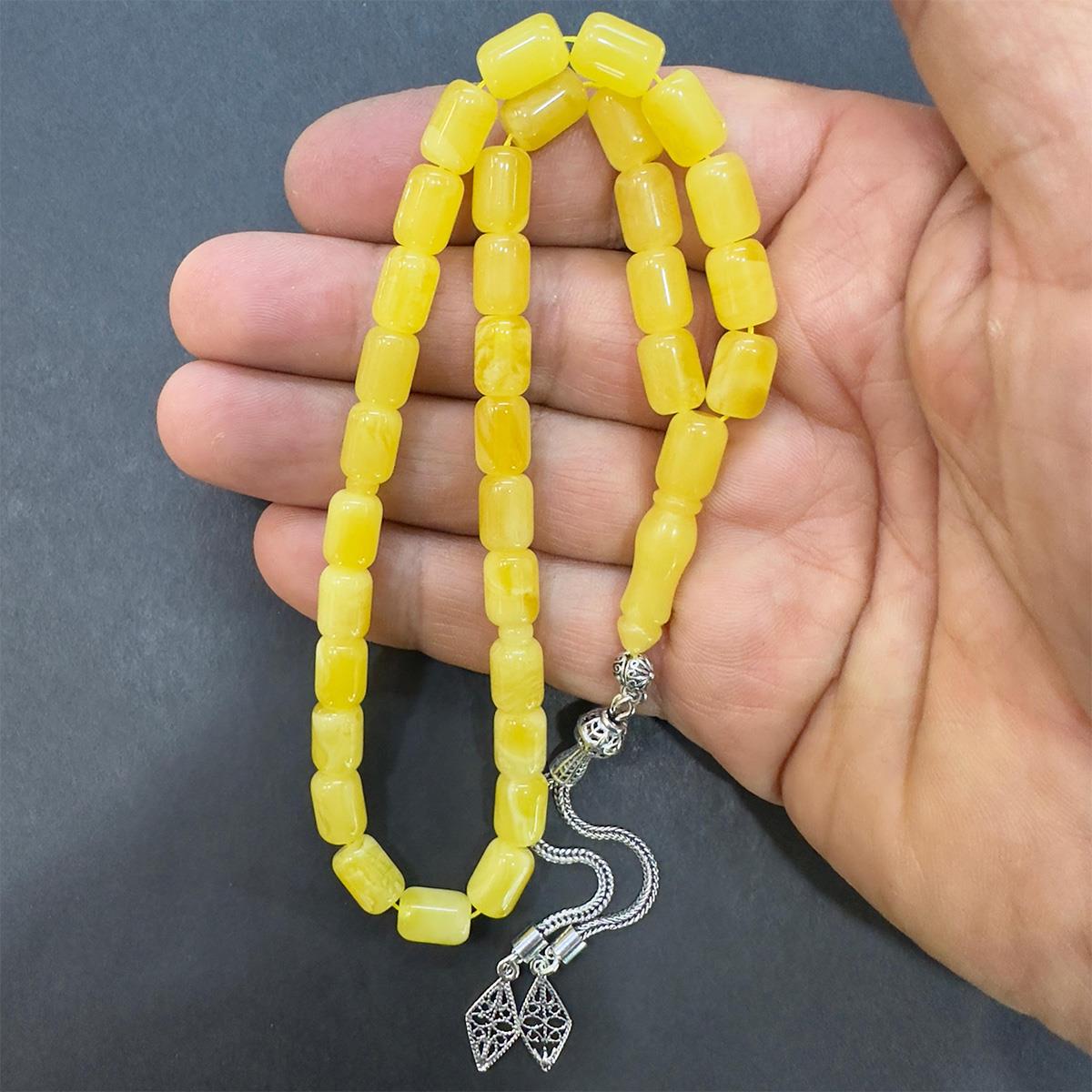 Kehribar taşı sanılanın aksine bir mücevher değil 40 milyon yıl önce ölen birçam türü olan Pinus succinifera ağaçlarının fosilleşmiş reçinesidir. Öyle ki kehribarlar, tarih öncesi böcekleri bile içinde saklamıştır. İnsanların binlerce yıldır, deniz kıyılarından, akarsulardan, alüvyon ve hatta bataklıklar arasından topladıkları bu değerli taş yeryüzünden silinen onlarca farklı ağaç türünün insanlığa armağanı olmuştur. 33 tanesi de çeşitli büyüklüklerde, bir kaç milyon yaşında haşere ihtiva eden kaliningrad damla kehribar tespih.