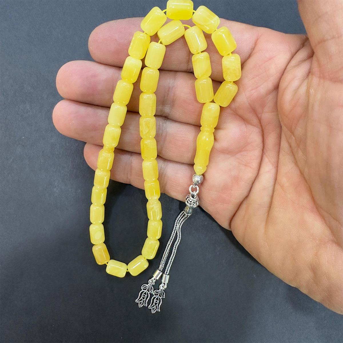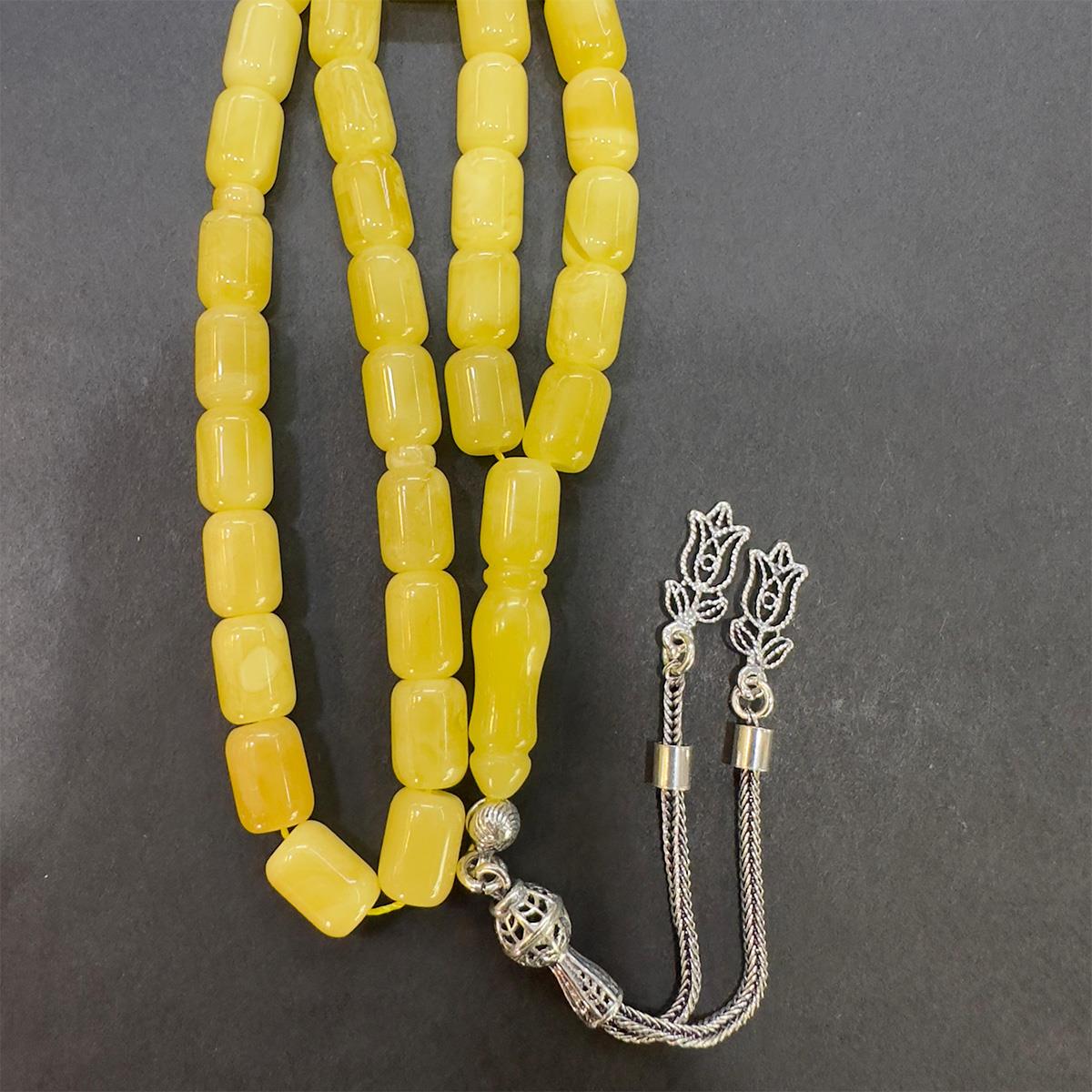 Kehribar taşı sanılanın aksine bir mücevher değil 40 milyon yıl önce ölen birçam türü olan Pinus succinifera ağaçlarının fosilleşmiş reçinesidir. Öyle ki kehribarlar, tarih öncesi böcekleri bile içinde saklamıştır. İnsanların binlerce yıldır, deniz kıyılarından, akarsulardan, alüvyon ve hatta bataklıklar arasından topladıkları bu değerli taş yeryüzünden silinen onlarca farklı ağaç türünün insanlığa armağanı olmuştur. 33 tanesi de çeşitli büyüklüklerde, bir kaç milyon yaşında haşere ihtiva eden kaliningrad damla kehribar tespih.
