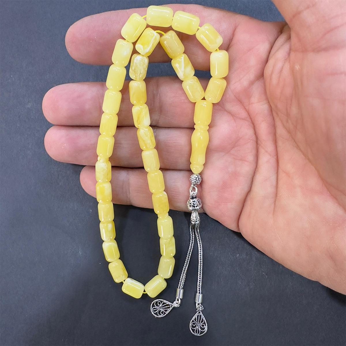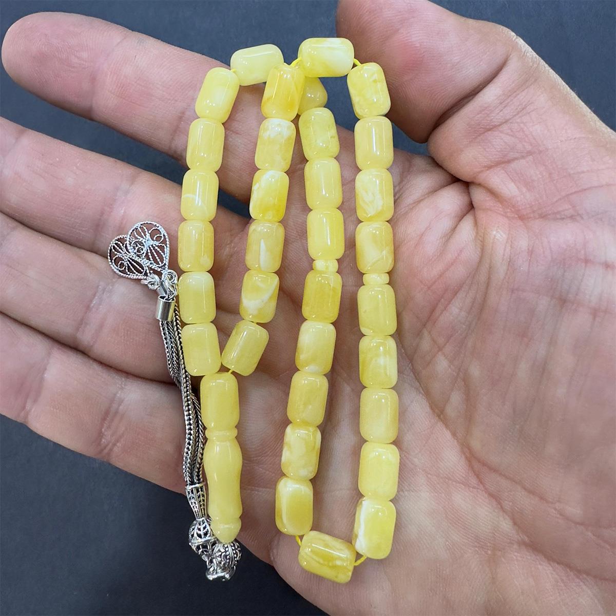 Kehribar taşı sanılanın aksine bir mücevher değil 40 milyon yıl önce ölen birçam türü olan Pinus succinifera ağaçlarının fosilleşmiş reçinesidir. Öyle ki kehribarlar, tarih öncesi böcekleri bile içinde saklamıştır. İnsanların binlerce yıldır, deniz kıyılarından, akarsulardan, alüvyon ve hatta bataklıklar arasından topladıkları bu değerli taş yeryüzünden silinen onlarca farklı ağaç türünün insanlığa armağanı olmuştur. 33 tanesi de çeşitli büyüklüklerde, bir kaç milyon yaşında haşere ihtiva eden kaliningrad damla kehribar tespih.