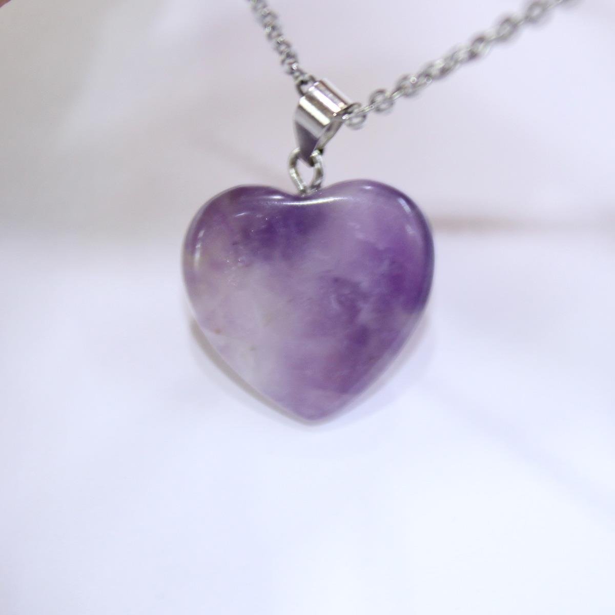 Kalp Model Ametist Doğaltaş Kolye