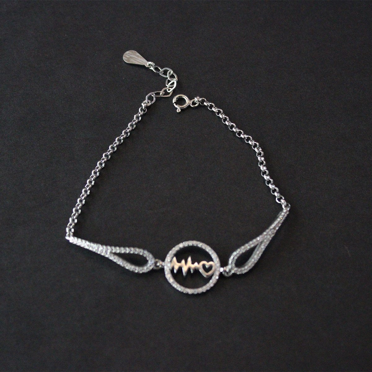 Kalpli Zirkon Taşlı Gümüş Bileklik-1