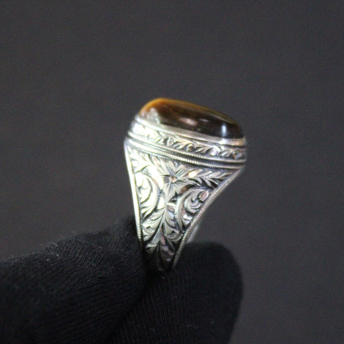 Kaplan Gözü Kalem İşçiliği Gümüş Erkek Yüzük