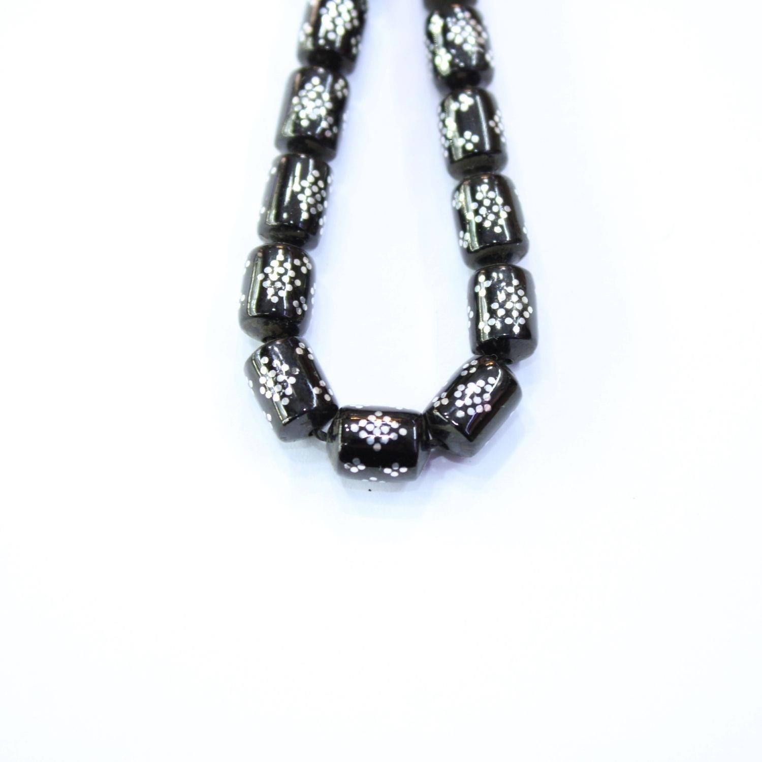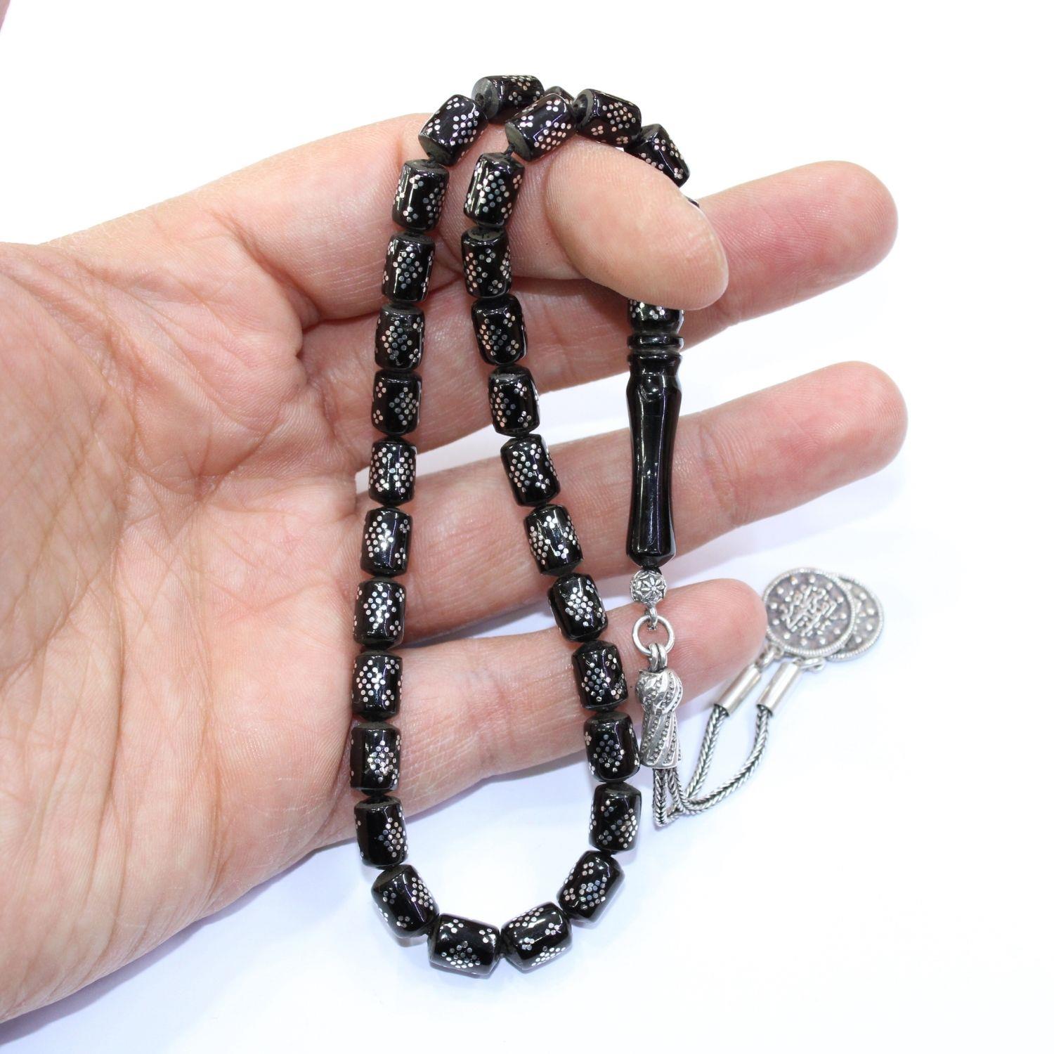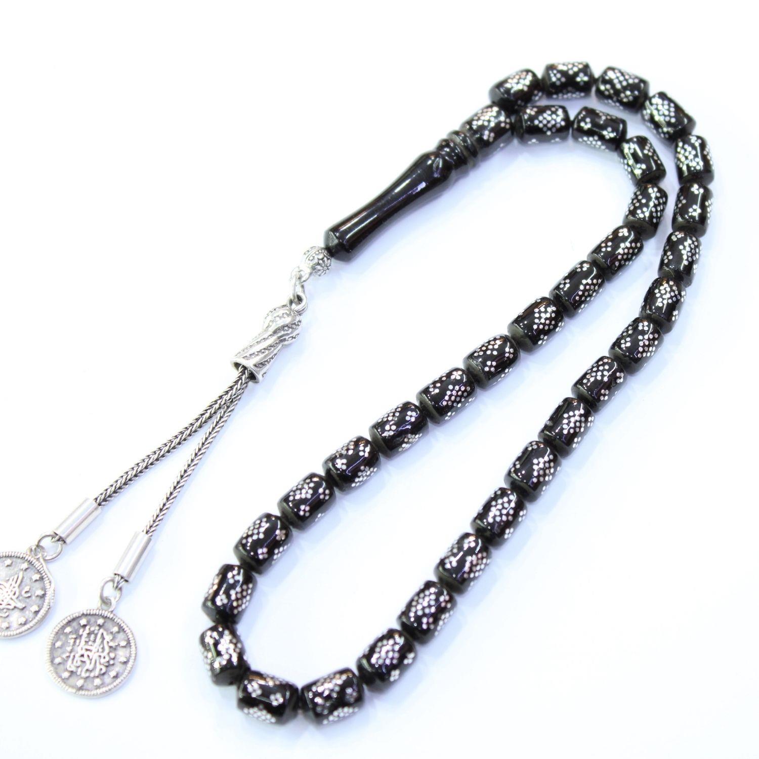 Kapsül Baklava İşlemeli Oltu Taşı Tespih 6,5*9 (mm)