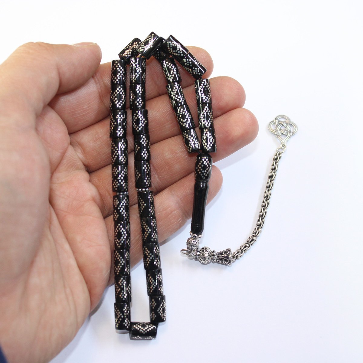 Kesme Baklava İşlemeli Oltu Taşı Tespih 6,5*9,5 (mm)