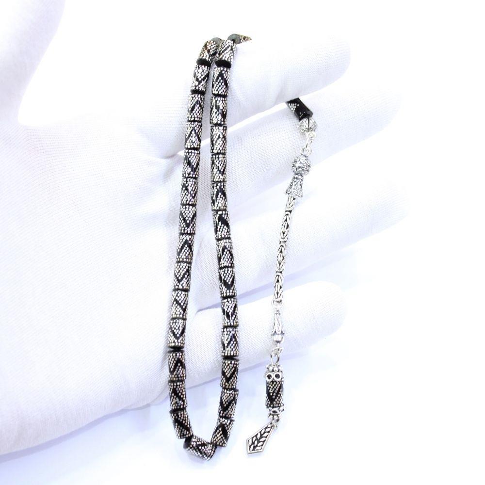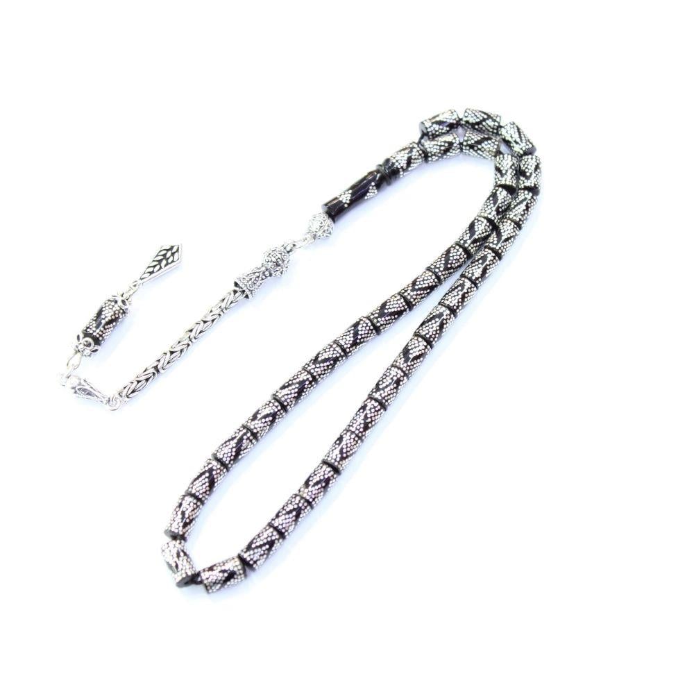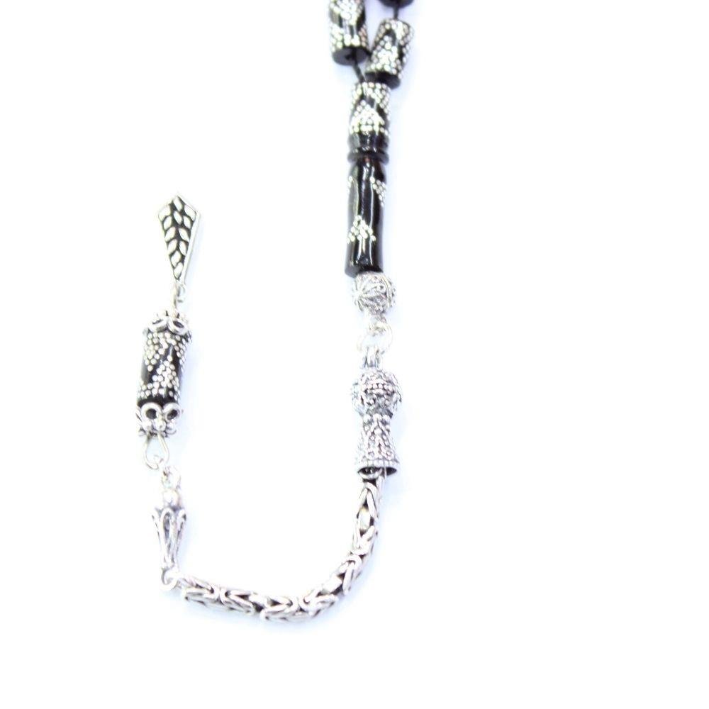 Kesme Piramit İşlemeli Oltu Taşı Tespih 5*8,5 (mm)