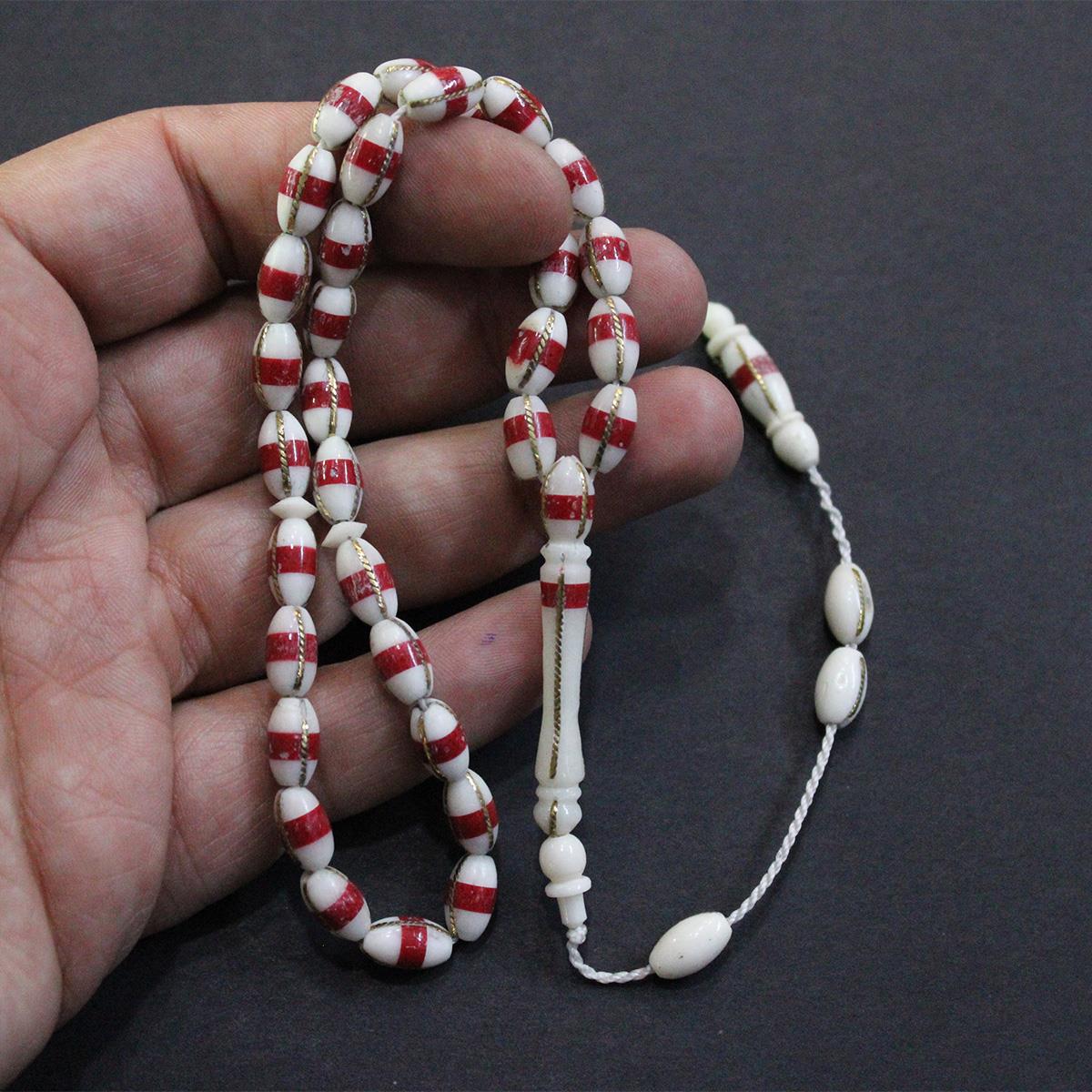 Kırmızı İşlemeli Deve Kemiği Beyzi Tespih 5,5*10 (mm)