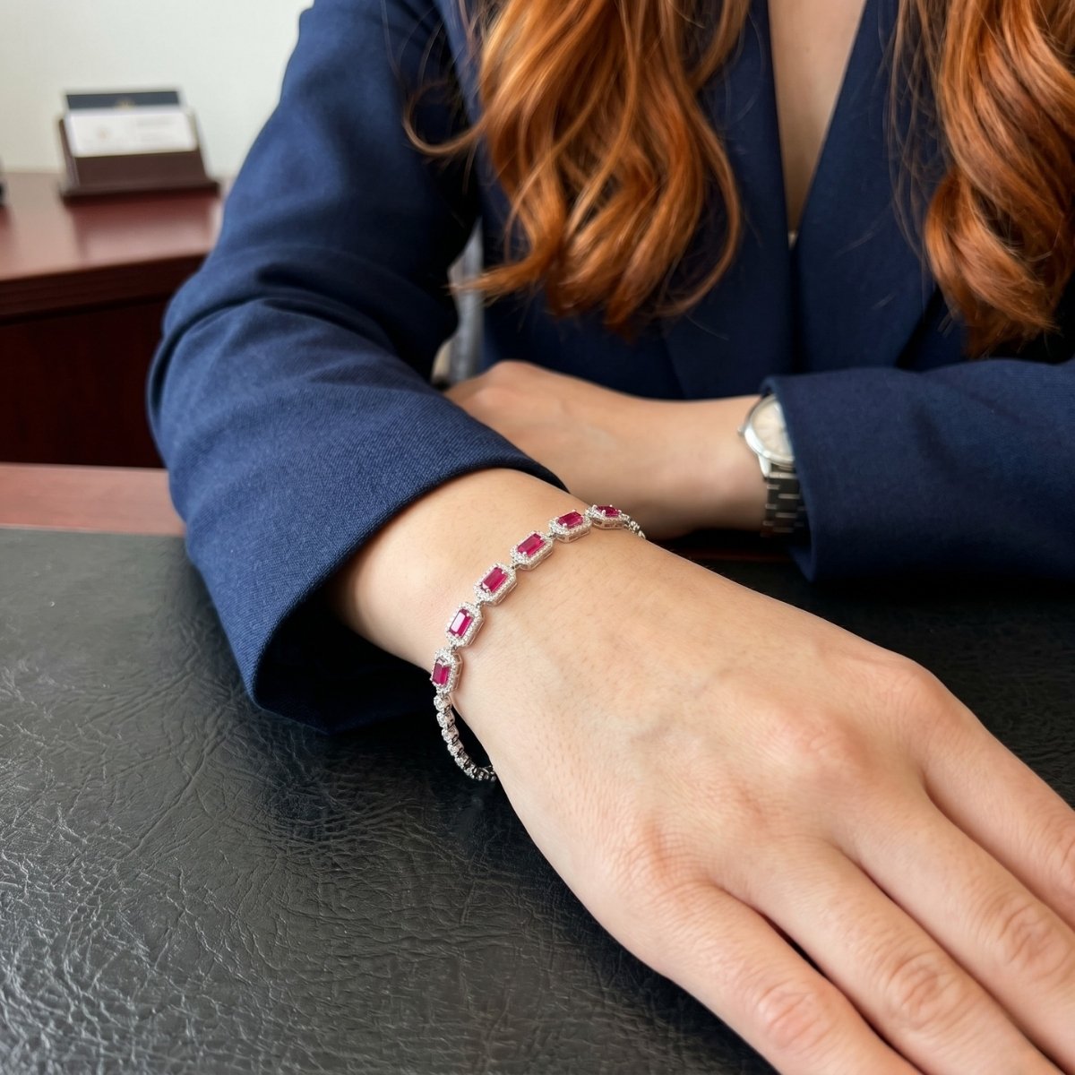 Kırmızı Zirkon Taşlı Gümüş Bileklik