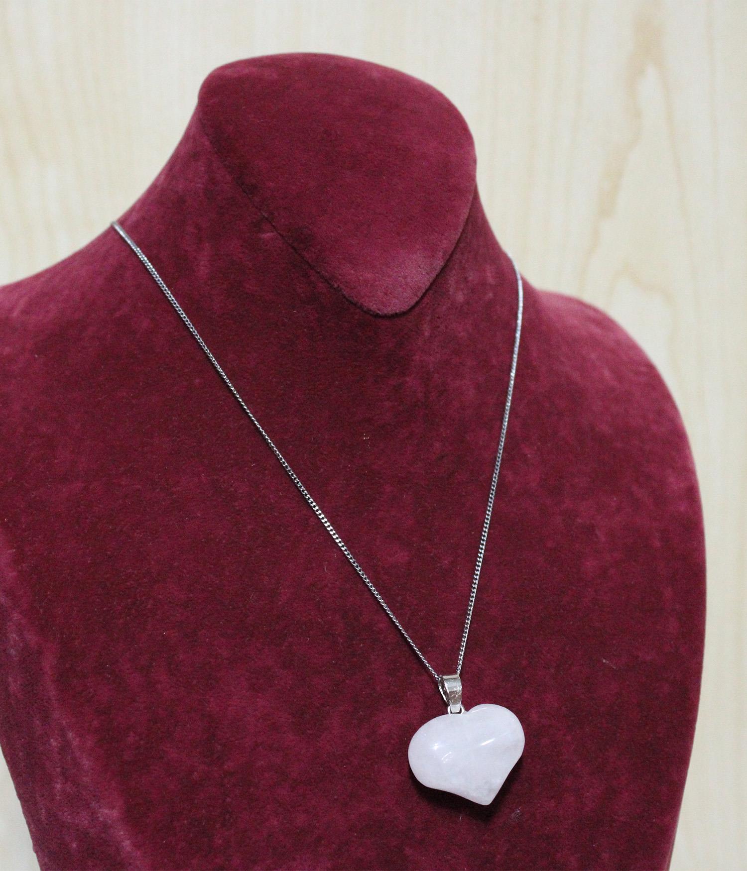 Kristal Kuvars Doğal Taş Kalp Kolye