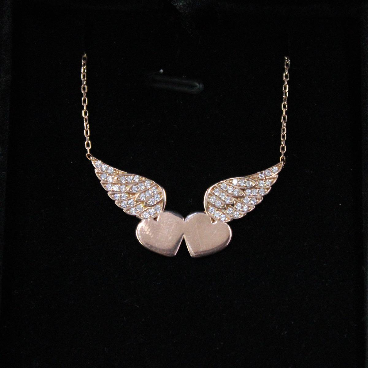 Melek Kanatlı Kalp Rose Hayalet Kolye