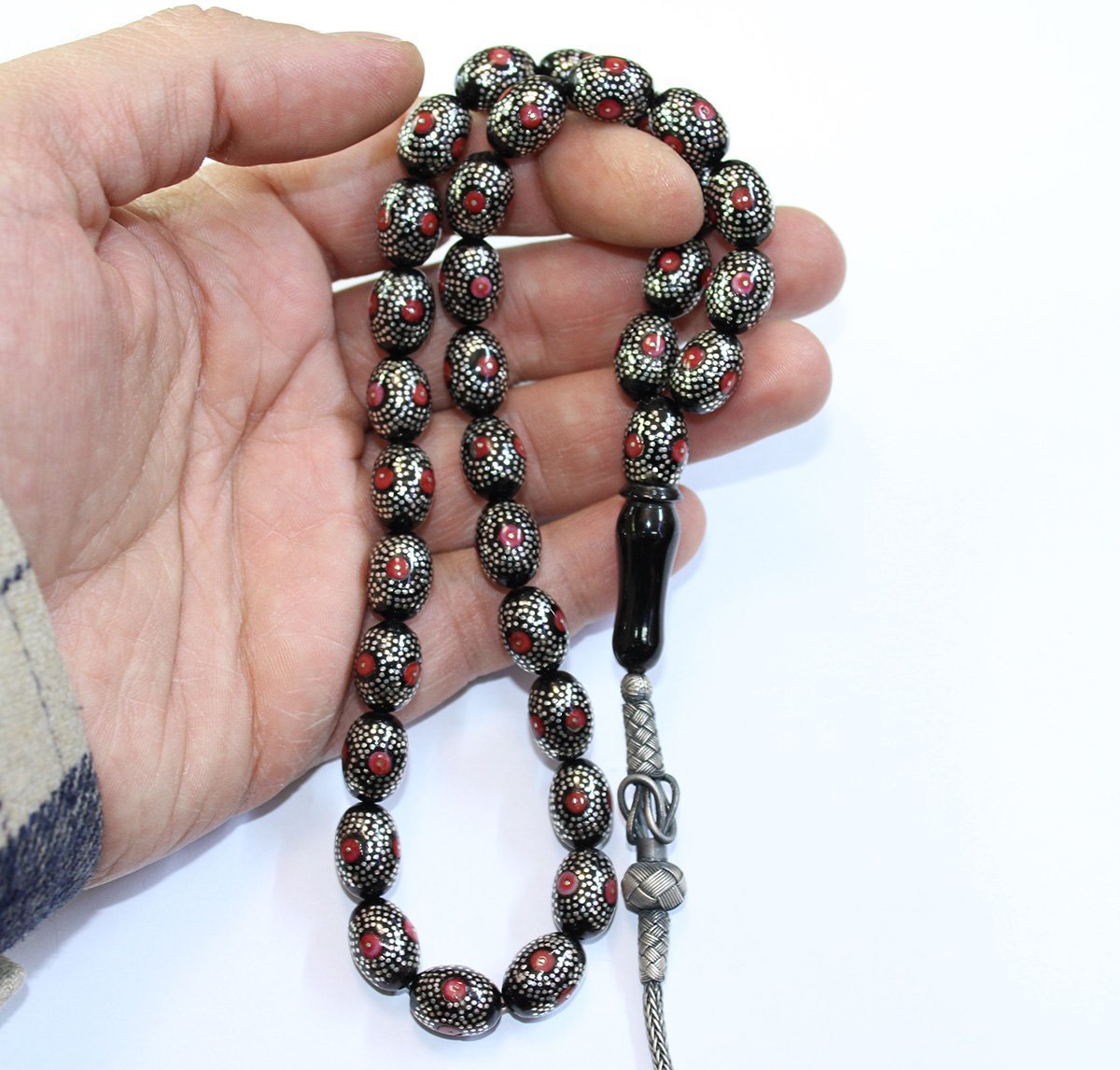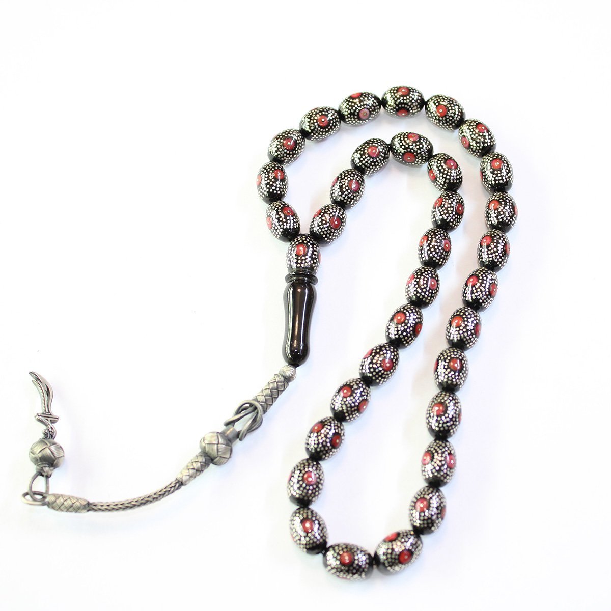 Mercan Yoğun Gümüş İşlemeli Oltu Taşı Tespih 9*12,5 (mm)
