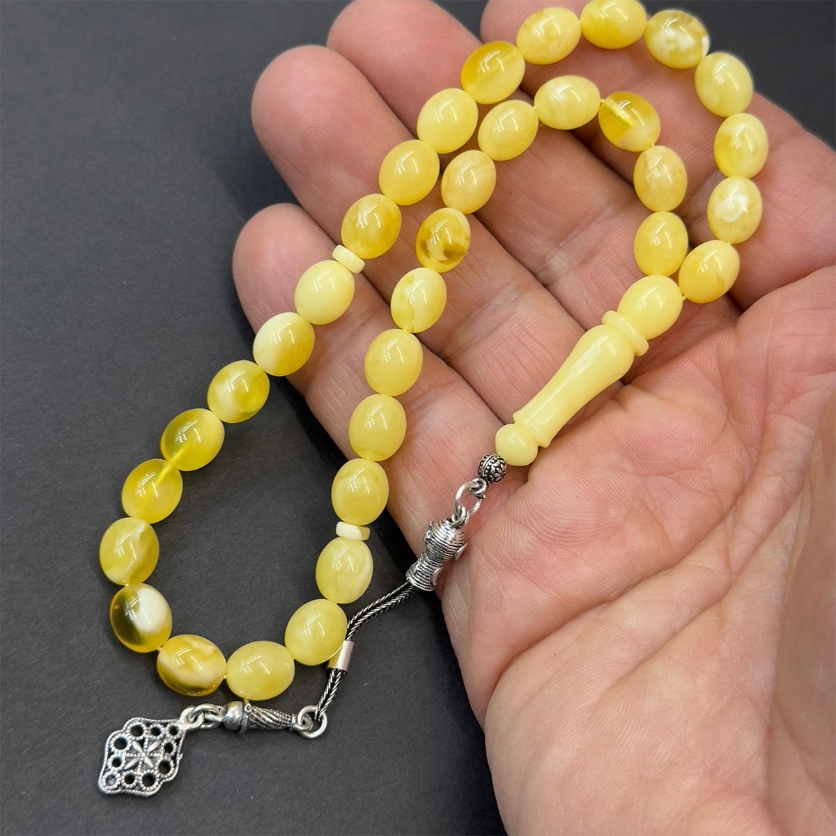 N.N Kaliningrad Damla Kehribar Badem Tespih 6,5*9 (mm)-1