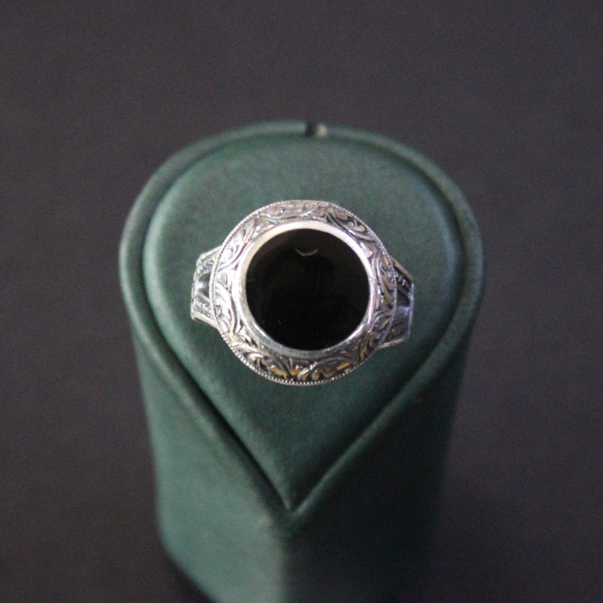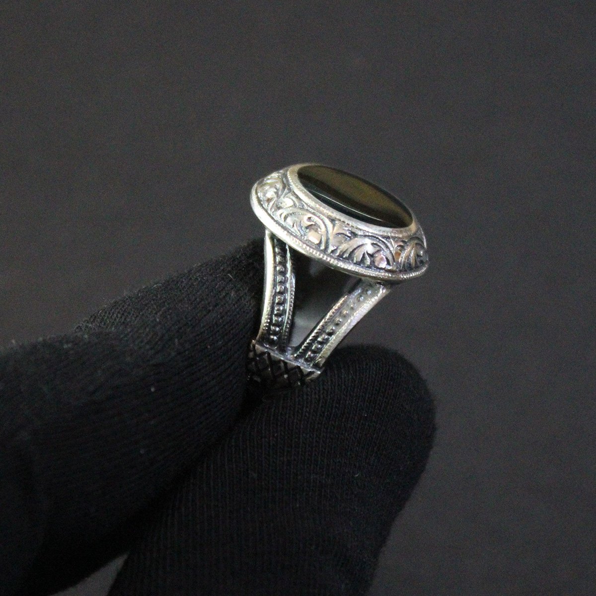 Oniks Taşlı Kalem İşçiliği Gümüş Erkek Yüzük-1