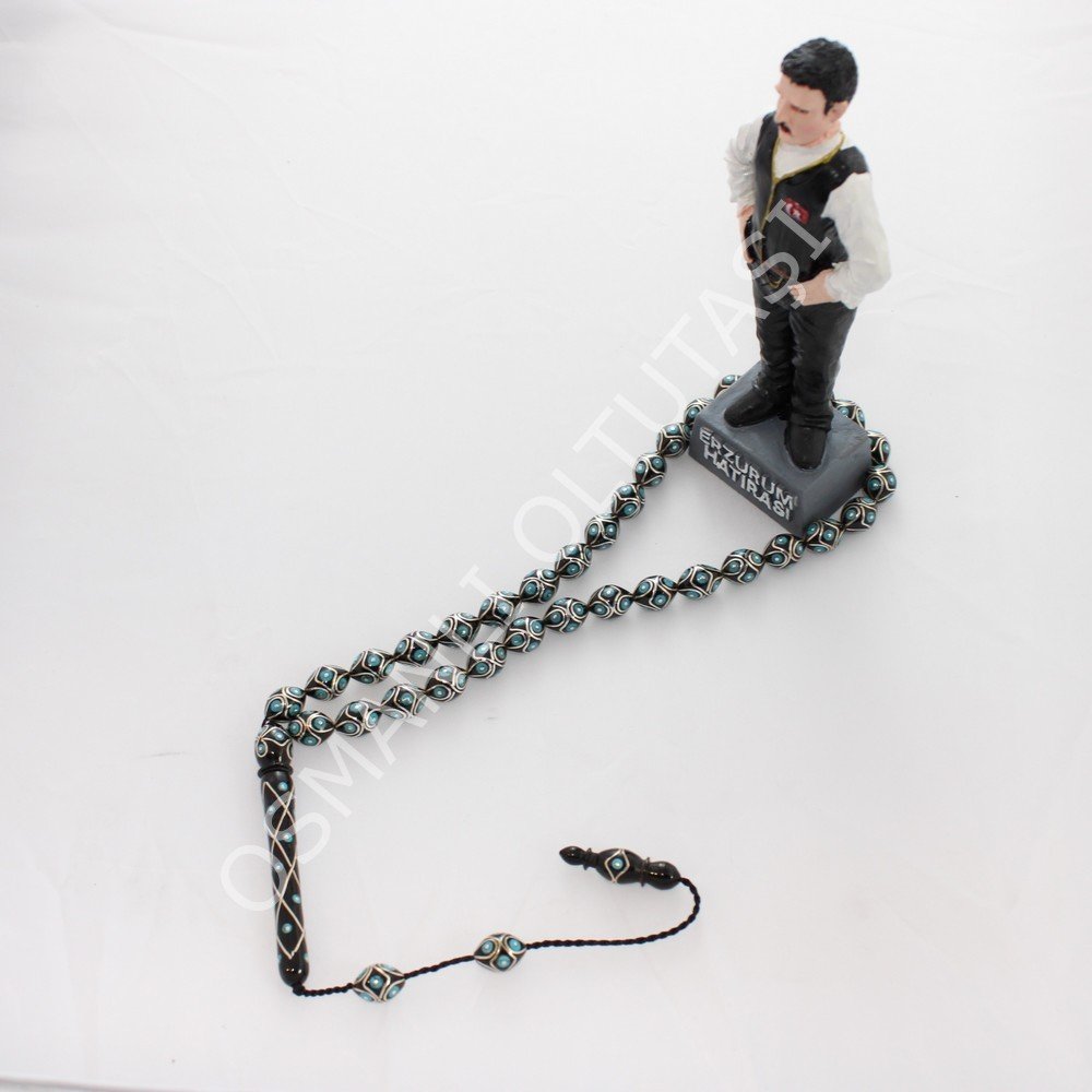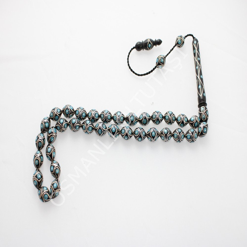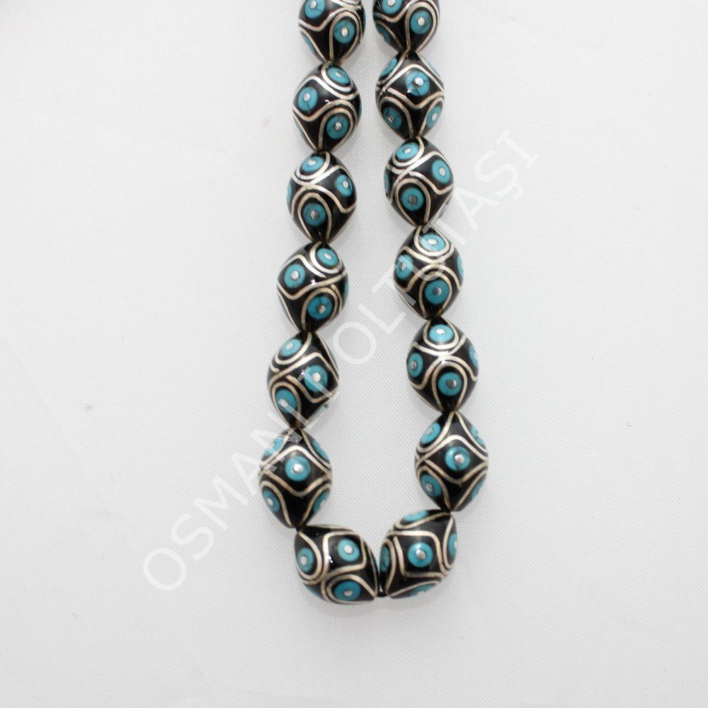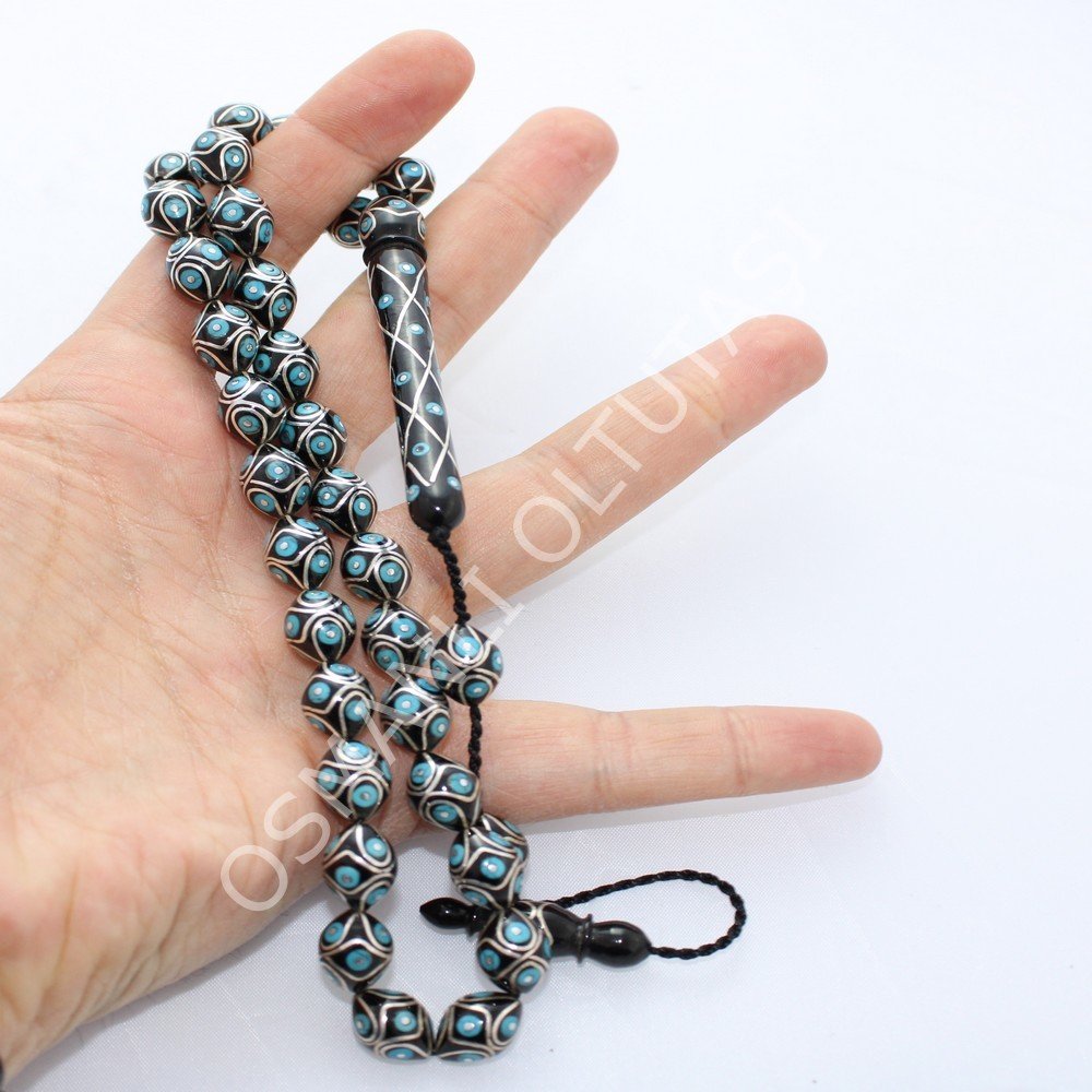Üst Düzey Koleksiyonluk Örgü Firuze İşlemeli Beyzi Kesim Oltu Taşı Tespih 9,5*12,5 (mm)